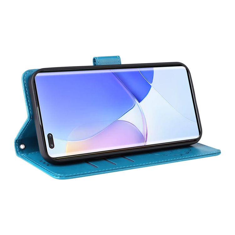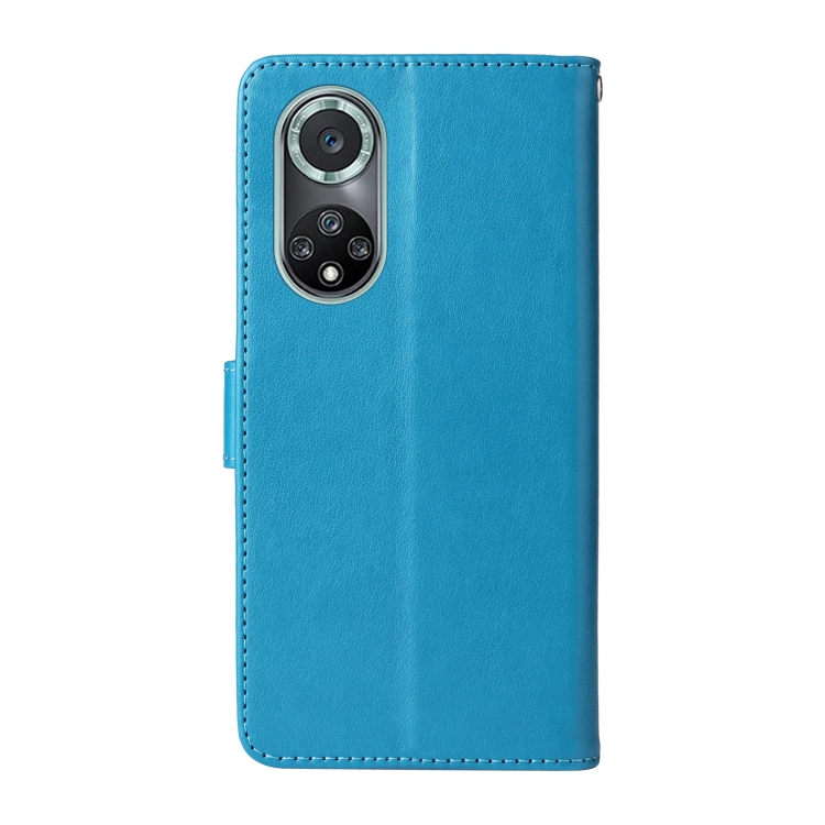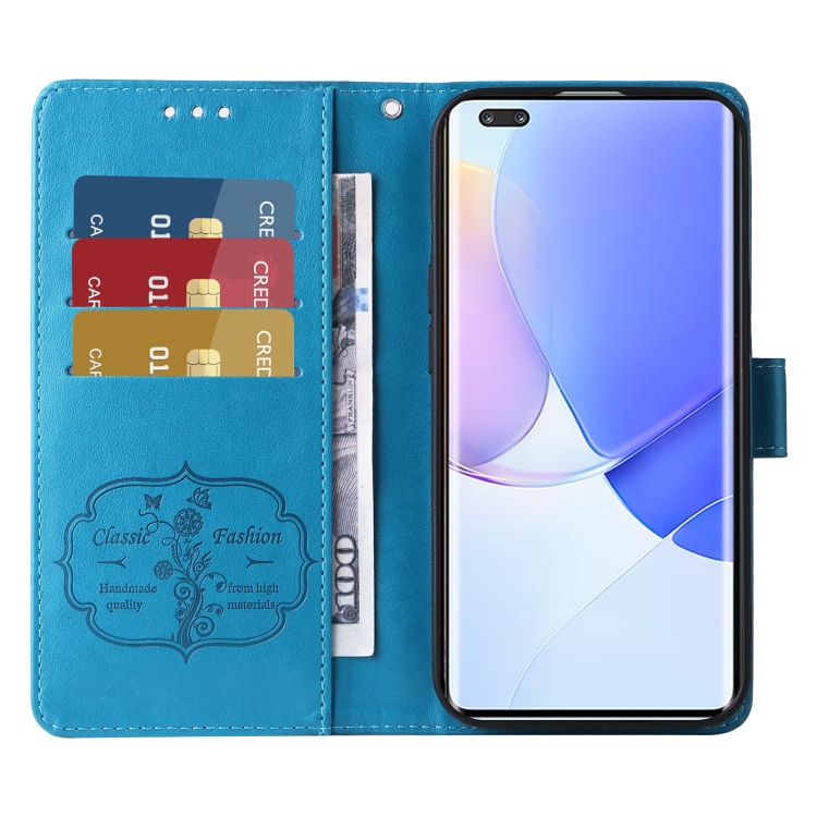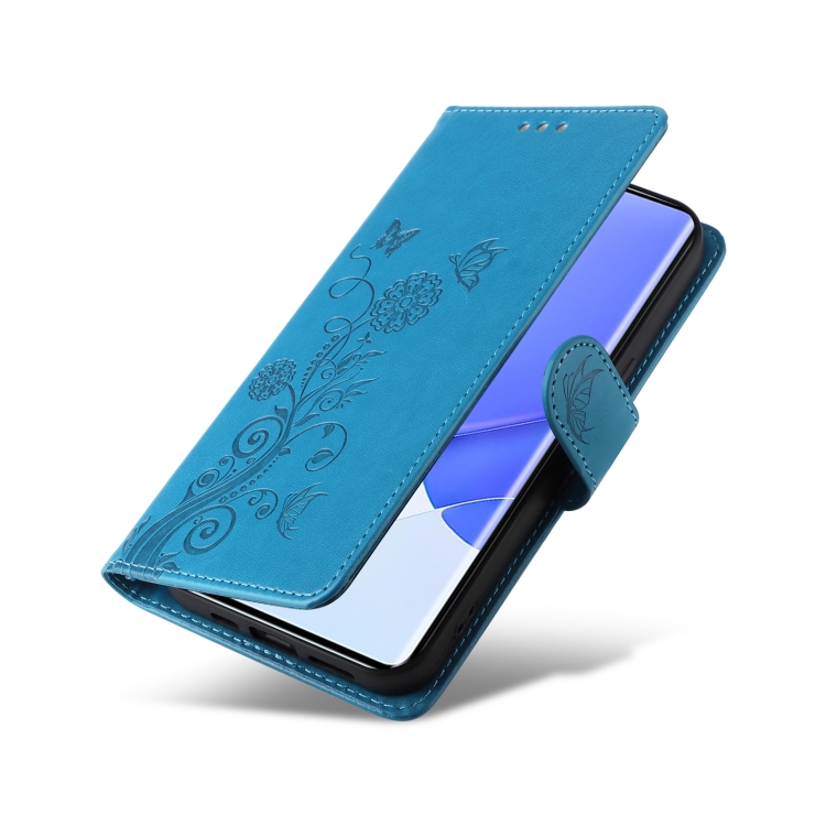 Funda de Cuero con Diseño de Mariposas y Flores en Relieve para Honor 50 Pro Huawei Nova 9 Pro (Azul)