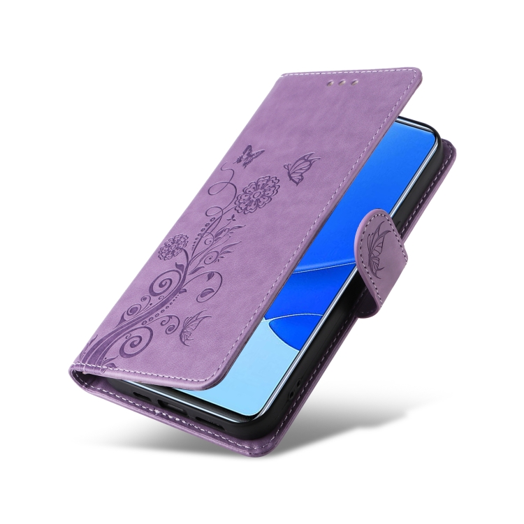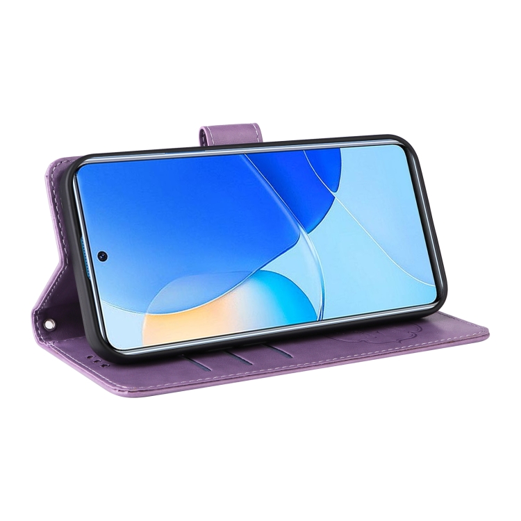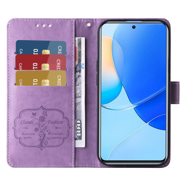 Funda de Cuero con Diseño de Mariposas y Flores en Relieve para Honor 50 Se Huawei Nova 9 Se (Morado)