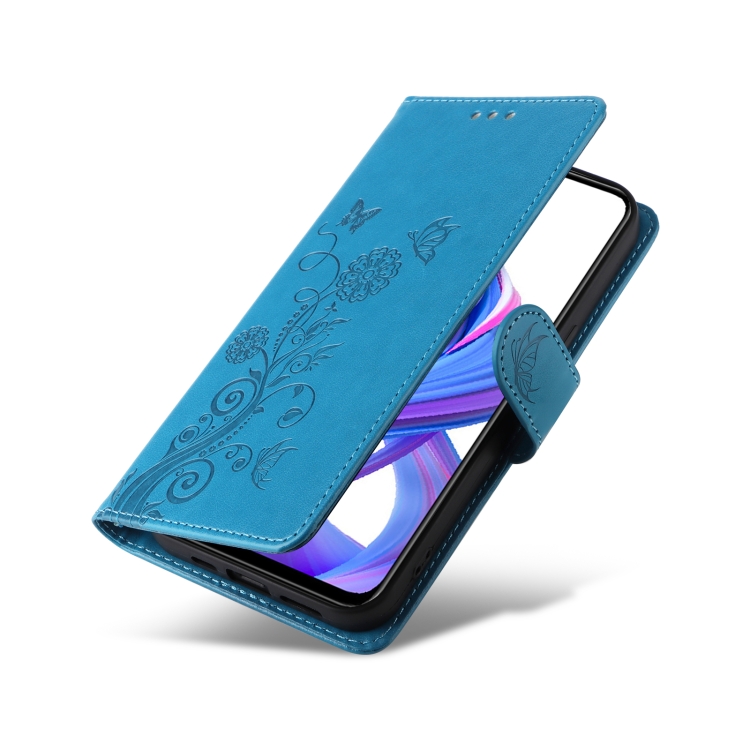Funda de Cuero para Honor Magic4 Lite 5G/4G/X40 Gt con Mariposas y Flores en Relieve (Azul)