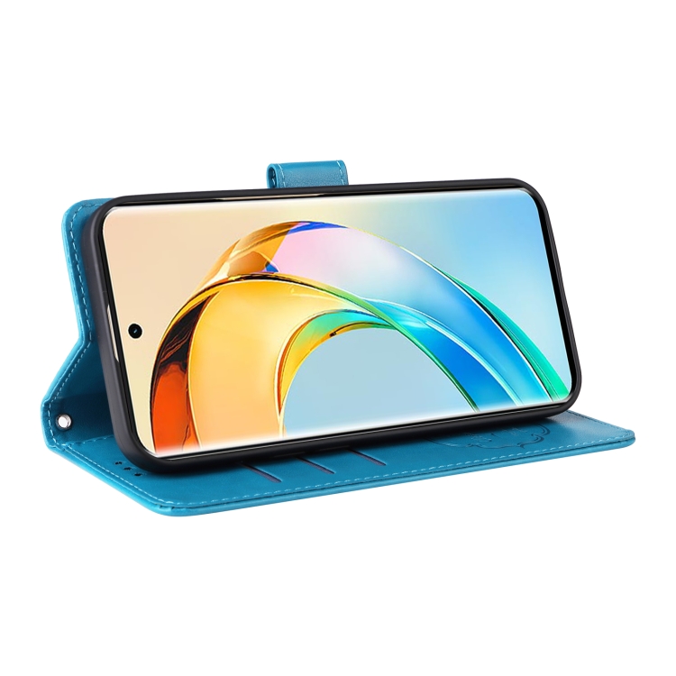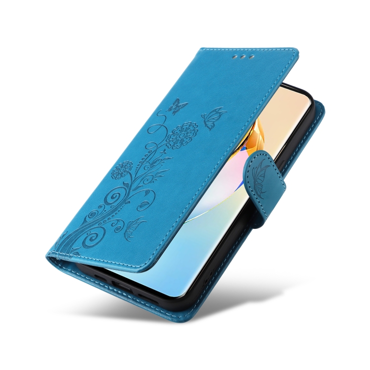 Funda de Cuero para Honor X50 X9B Magic6 Lite con Diseño de Mariposas y Flores en Relieve (Azul)