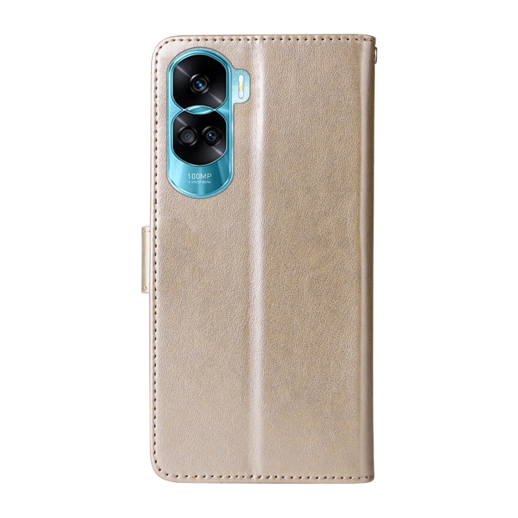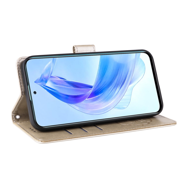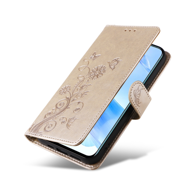 Funda de Cuero con Diseño de Mariposas y Flores en Relieve para Honor X50I 5G y 90 Lite (Dorada)
