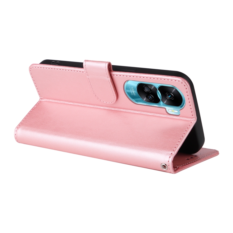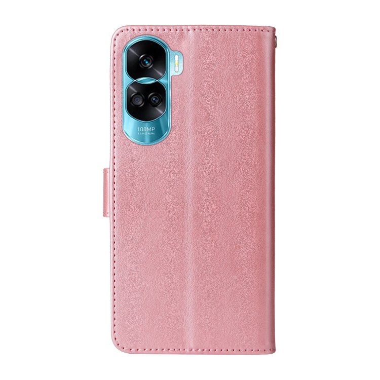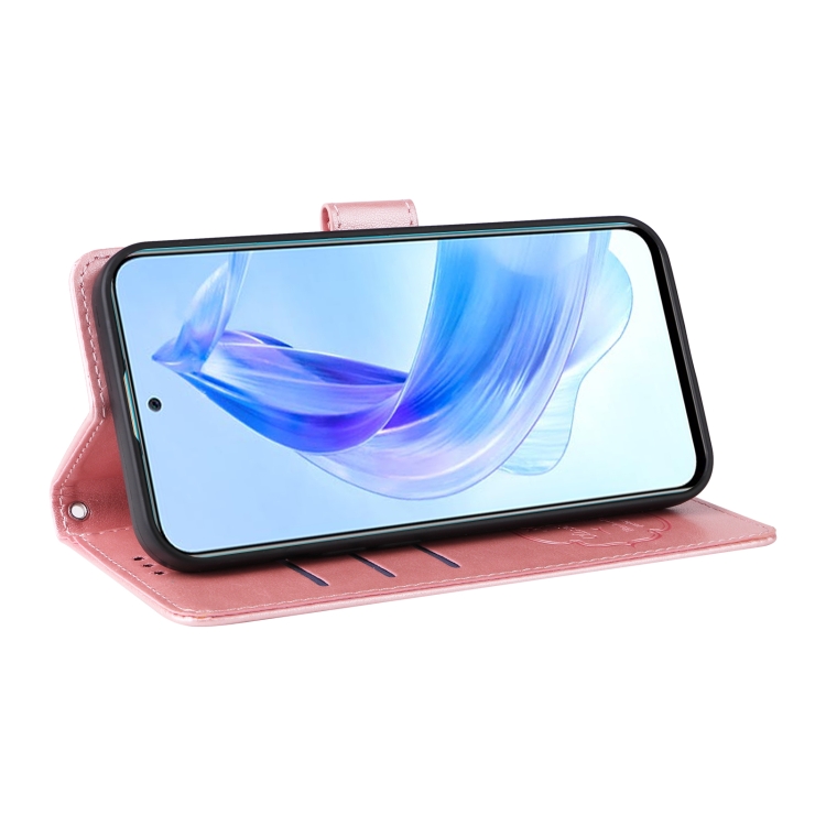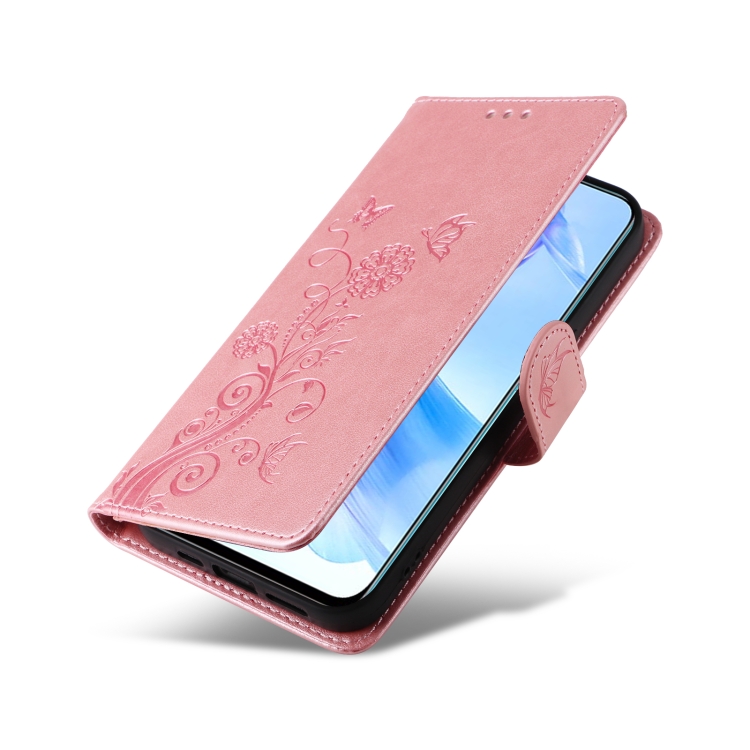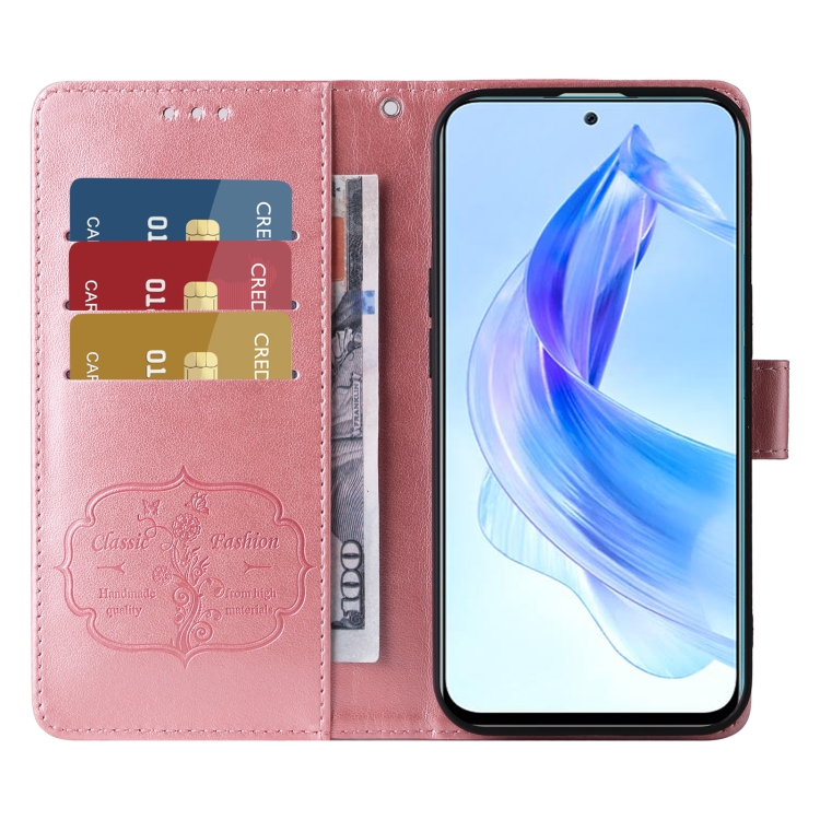 Funda de Cuero para Honor X50I 5G y 90 Lite con Diseño de Mariposas y Flores en Relieve (Oro Rosa)