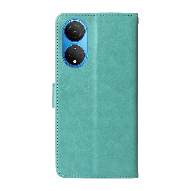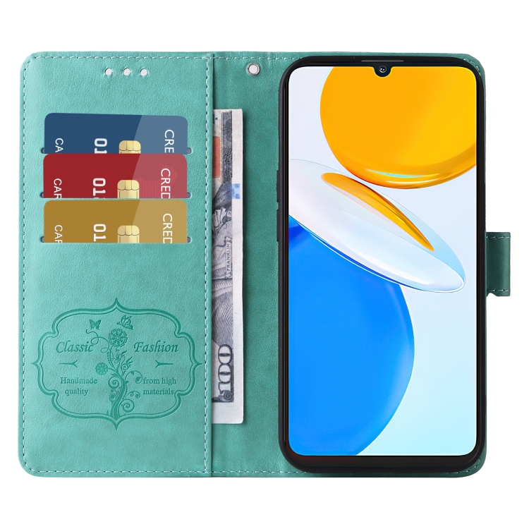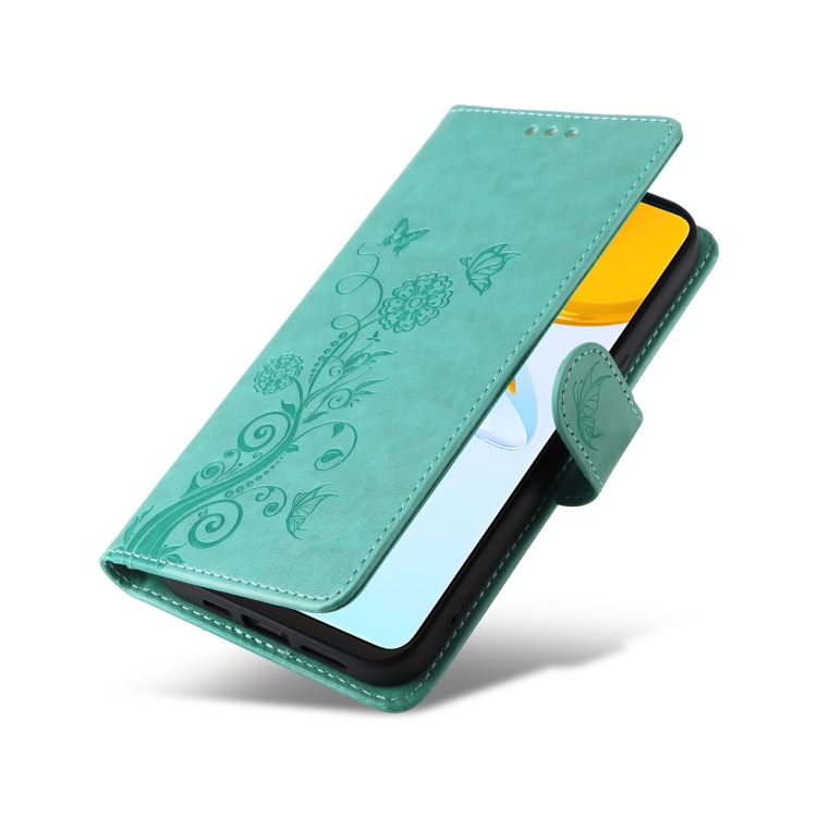 Funda de Cuero para Honor X7 4G y Huawei Enjoy 30 Plus con Diseño de Mariposas y Flores en Relieve (Verde)