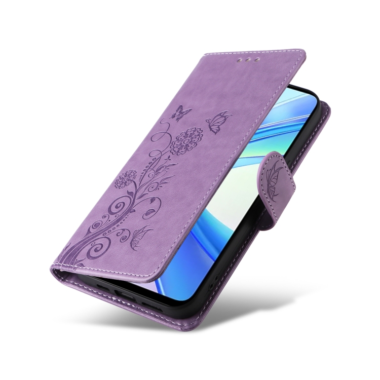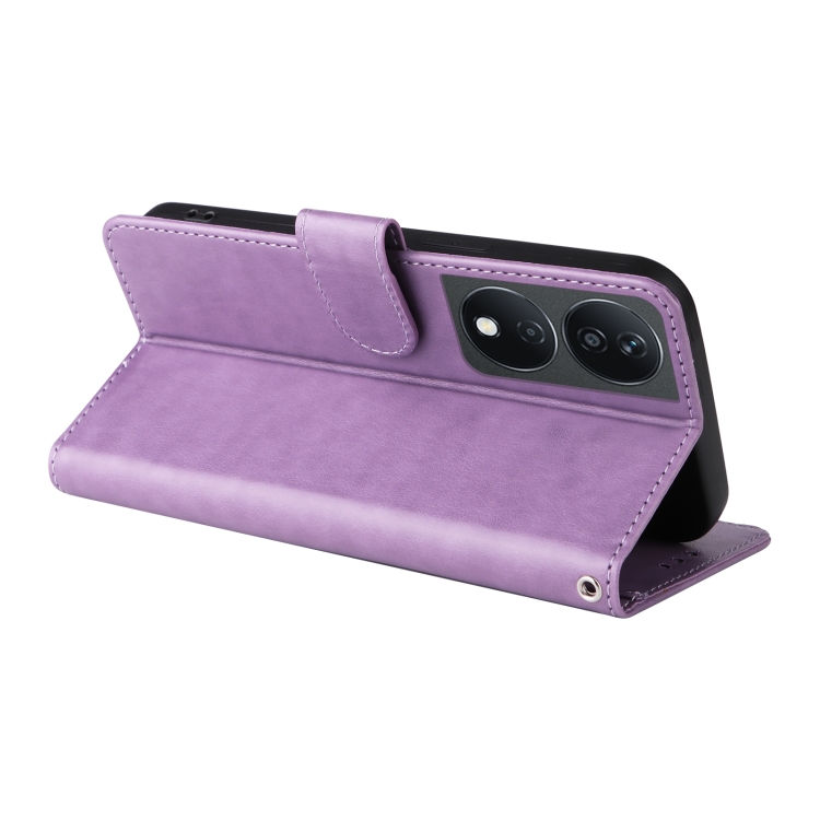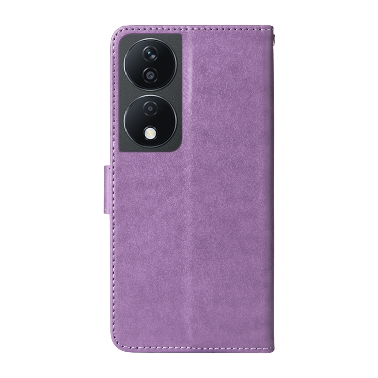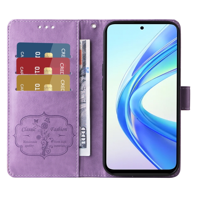 Funda de Cuero para Honor X7B 5G/4G/90 Smart 5G con Diseño de Mariposas y Flores en Relieve (Morado)