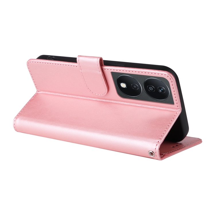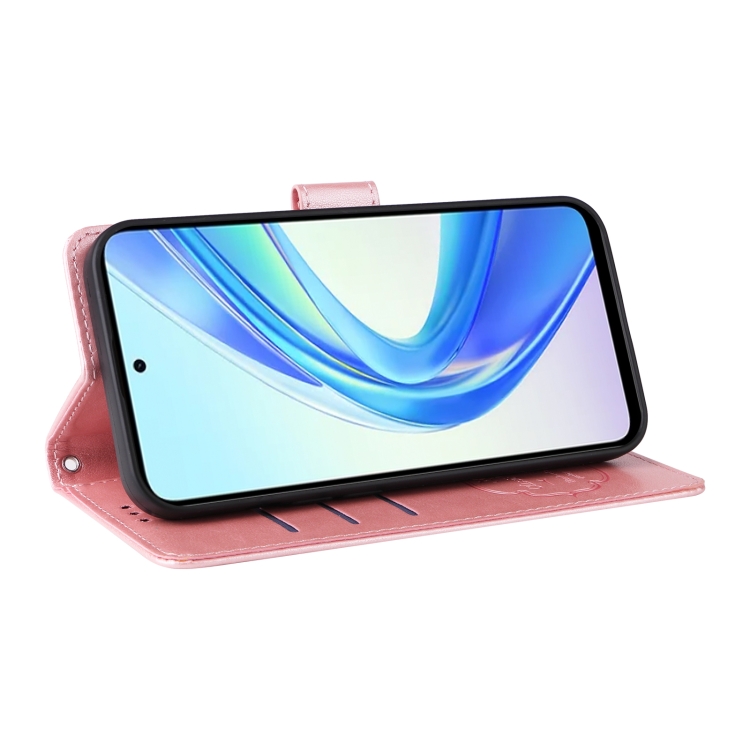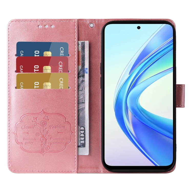 Funda de Cuero para Honor X7B 5G/4G/90 Smart 5G con Diseño de Mariposas y Flores en Relieve (Oro Rosa)