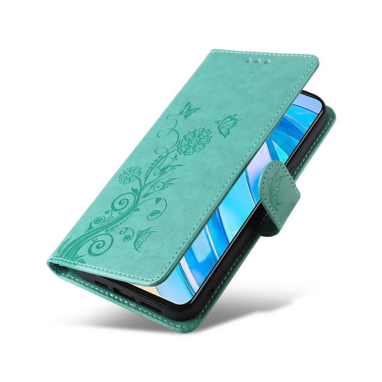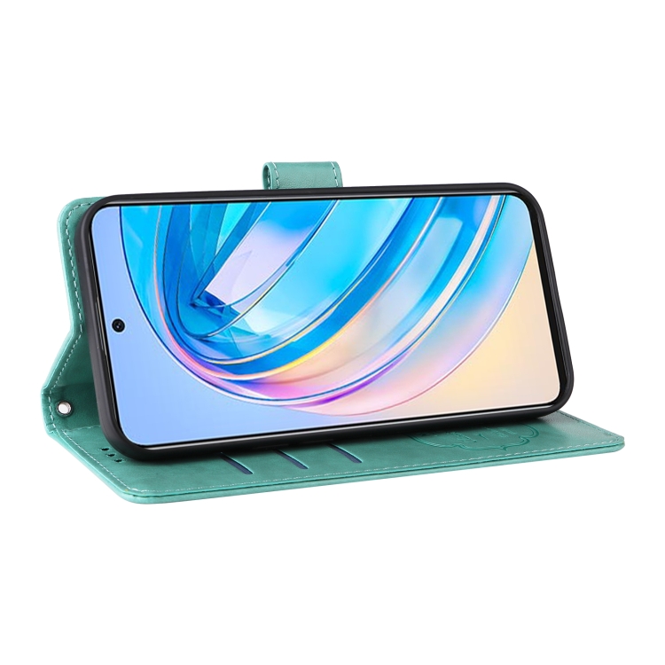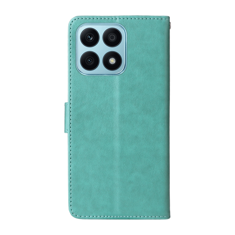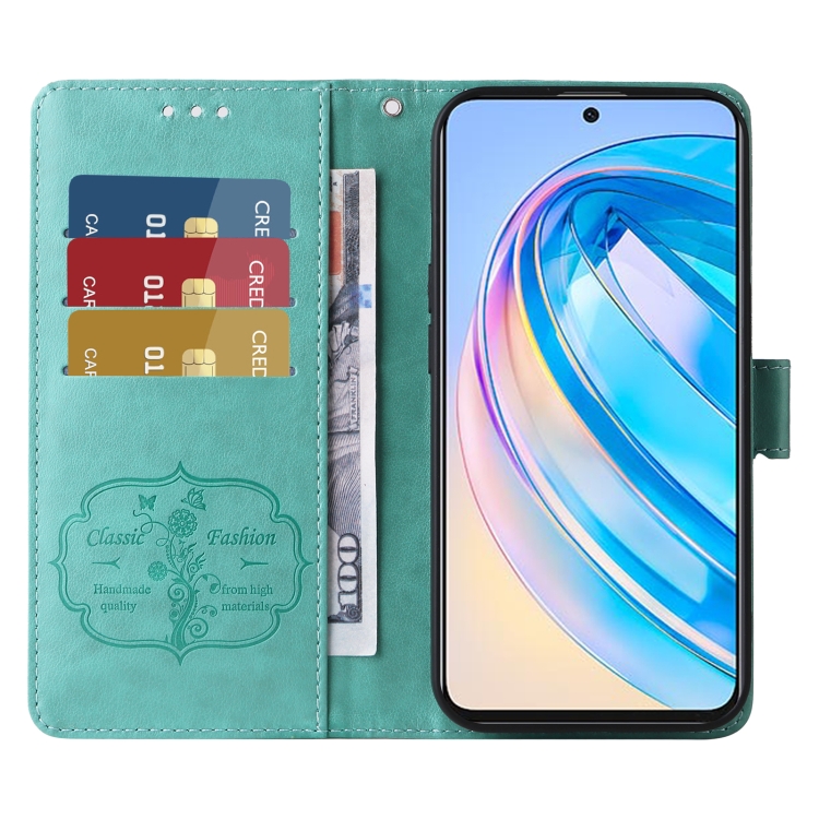 Funda de Cuero para Honor X8A 4G con Diseño de Mariposas y Flores en Relieve (Verde)