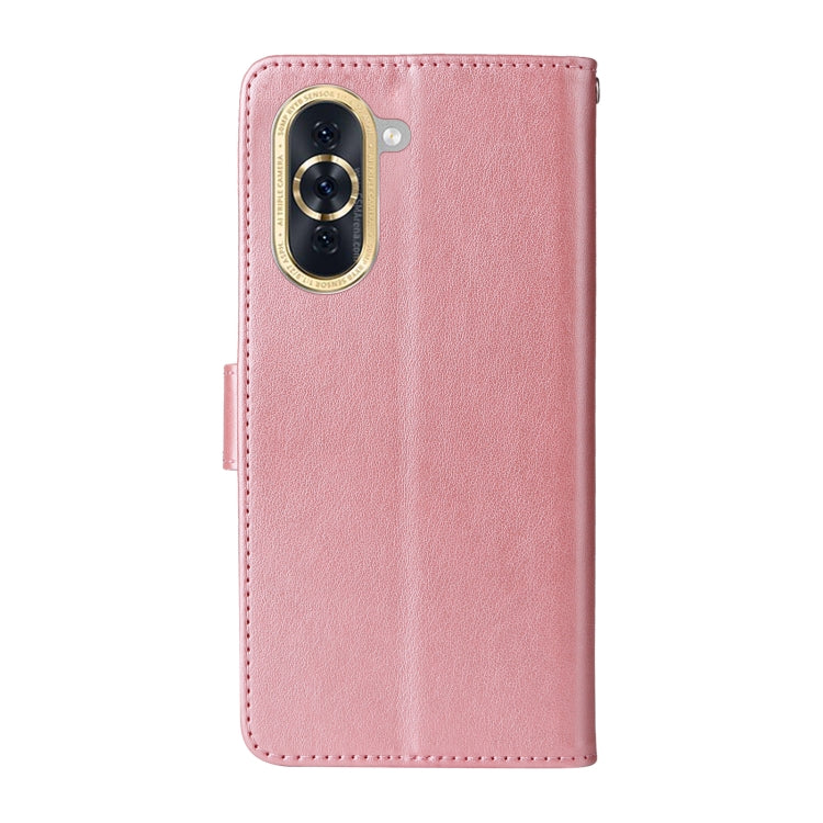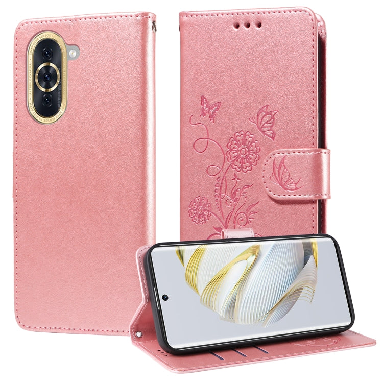 Funda de Cuero para Huawei Nova 10 con Diseño de Mariposas y Flores en Relieve (Oro Rosa)