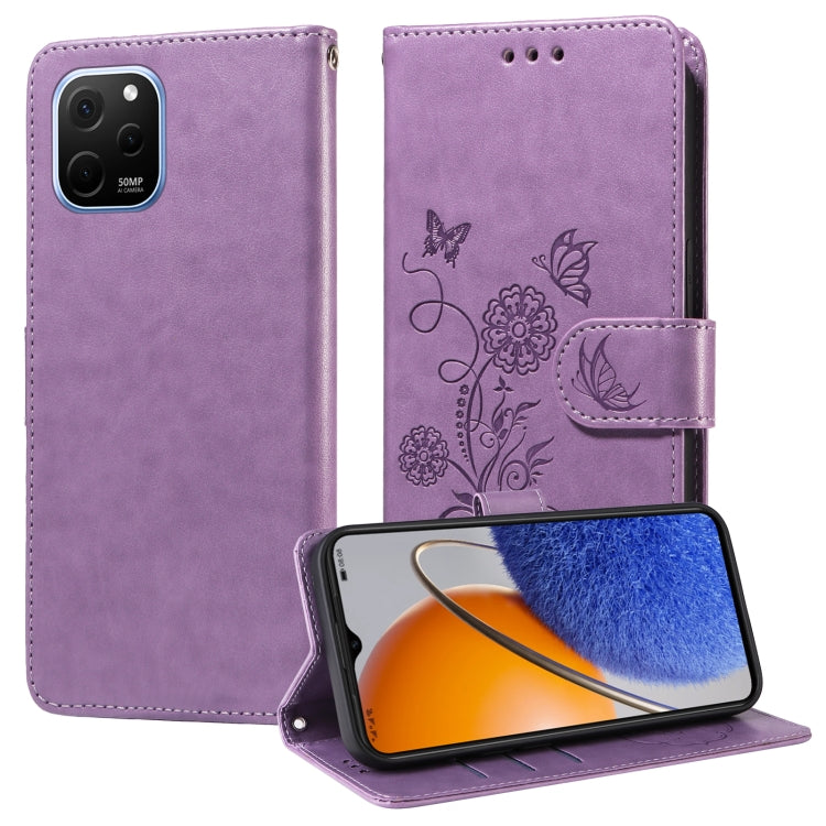 Funda de Cuero Huawei Nova Y61 Enjoy 50Z Diseño Mariposas y Flores En Relieve (Morado)