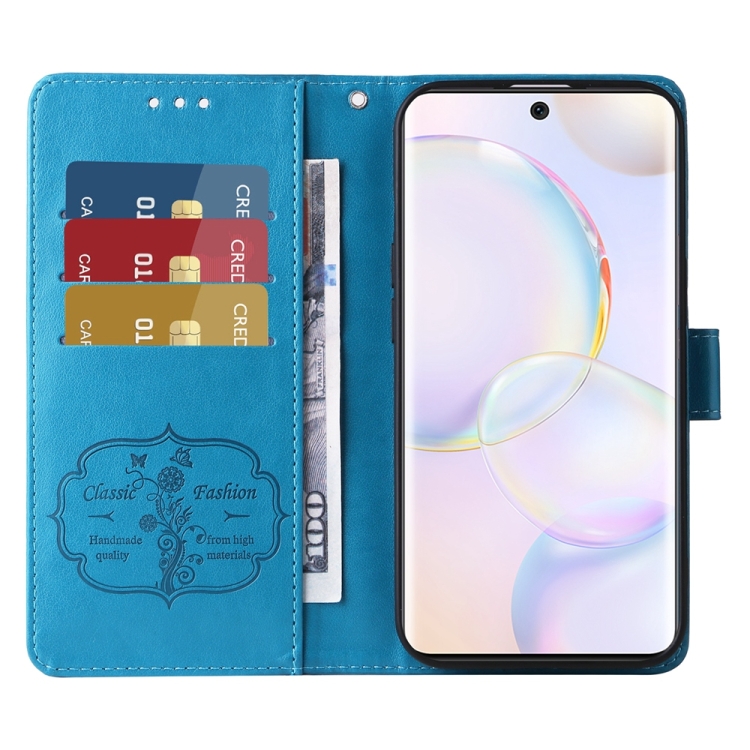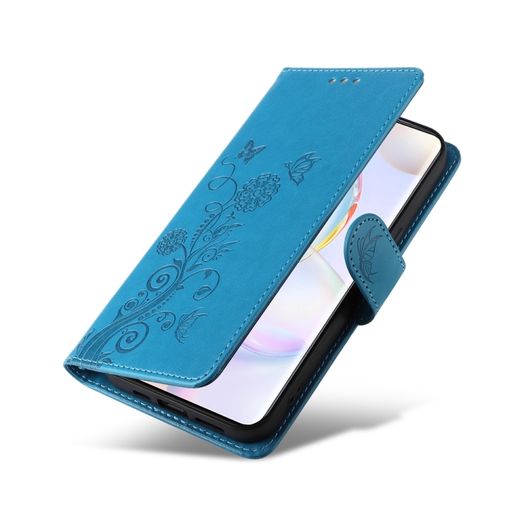 Funda de Cuero con Diseño de Mariposas y Flores En Relieve para Oppo A1/A98/F23 5G (Azul)