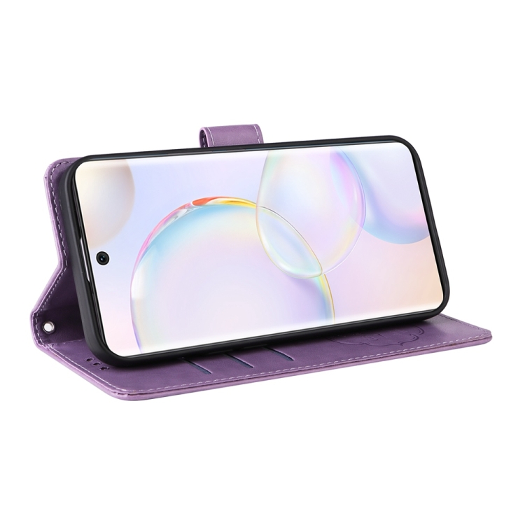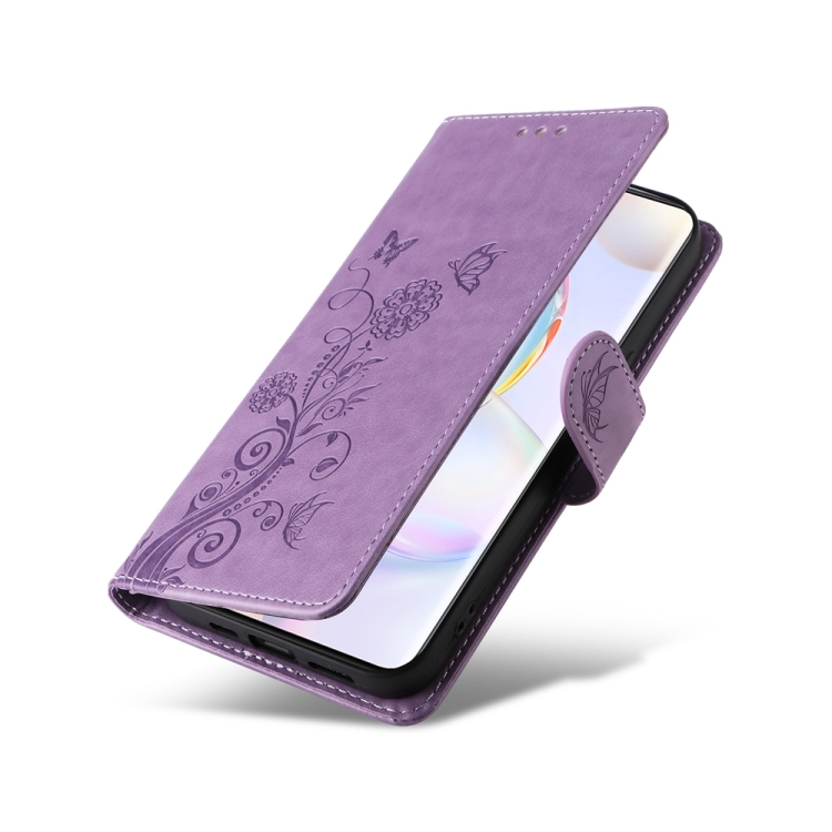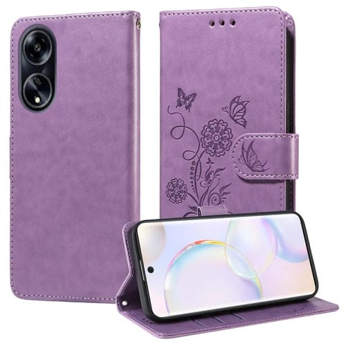 Funda de Cuero con Diseño de Mariposas y Flores En Relieve para Oppo A1/A98/F23 5G (Morado)