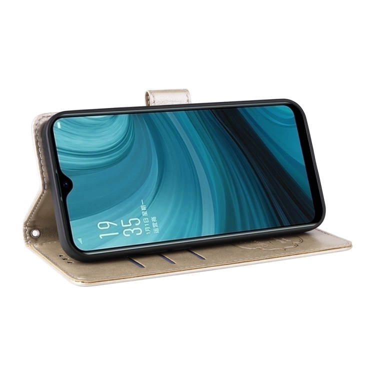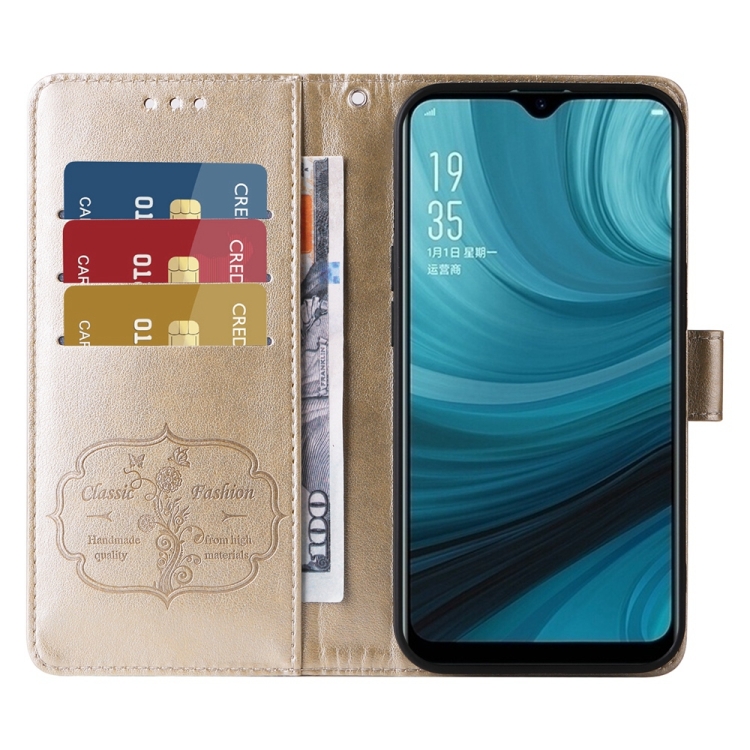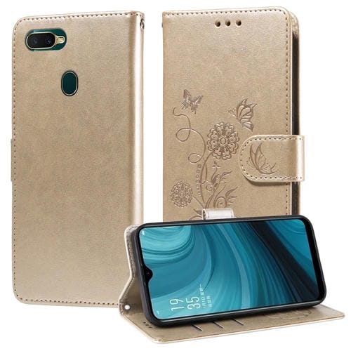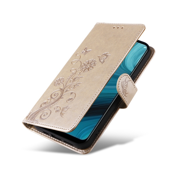 Funda de Cuero con Diseño de Mariposas y Flores En Relieve para Oppo A12/A12S/A11K (Dorada)