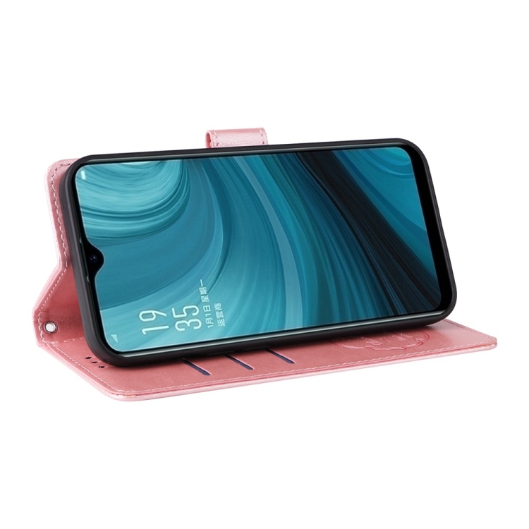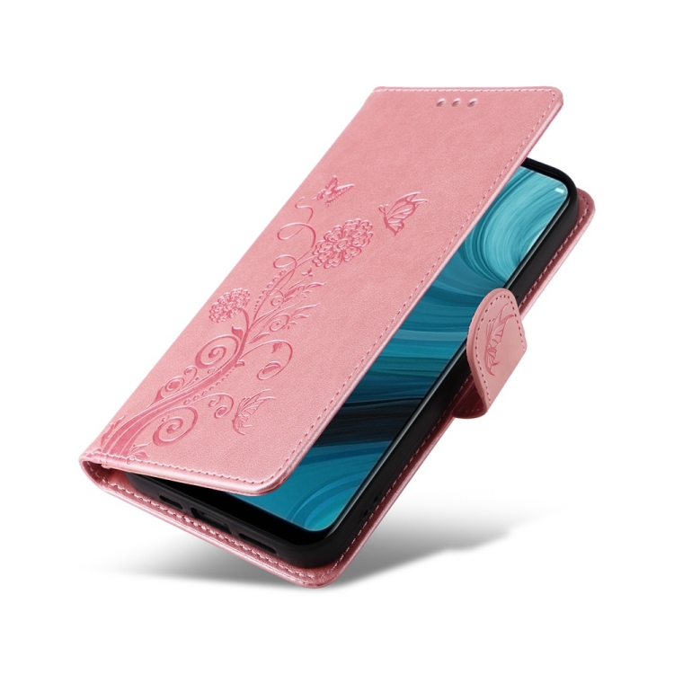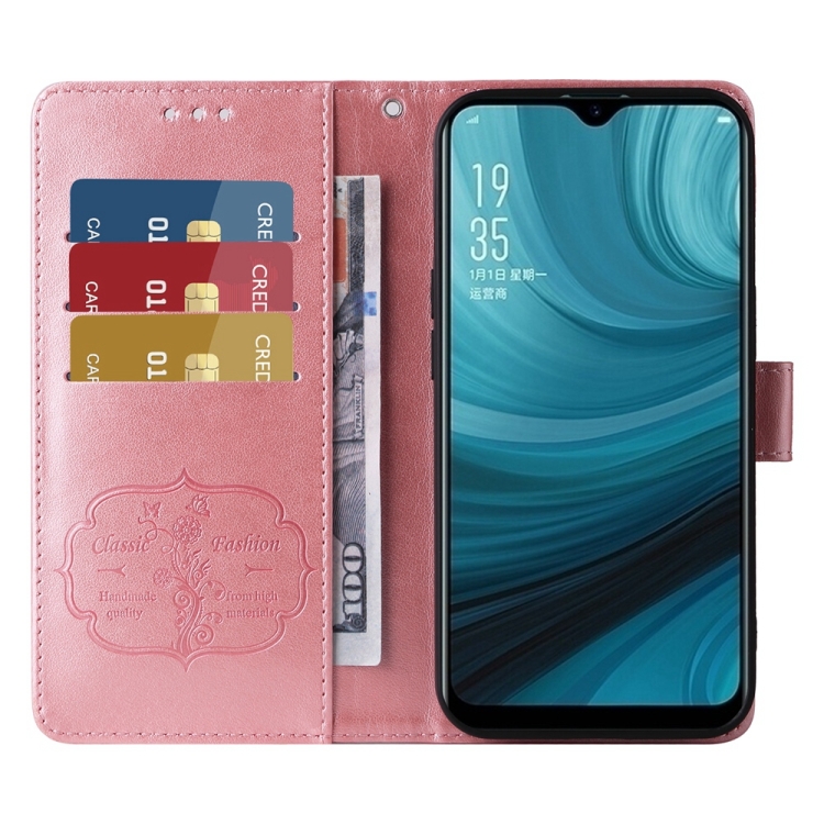 Funda de Cuero con Diseño de Mariposas y Flores En Relieve para Oppo A12/A12S/A11K (Oro Rosa)
