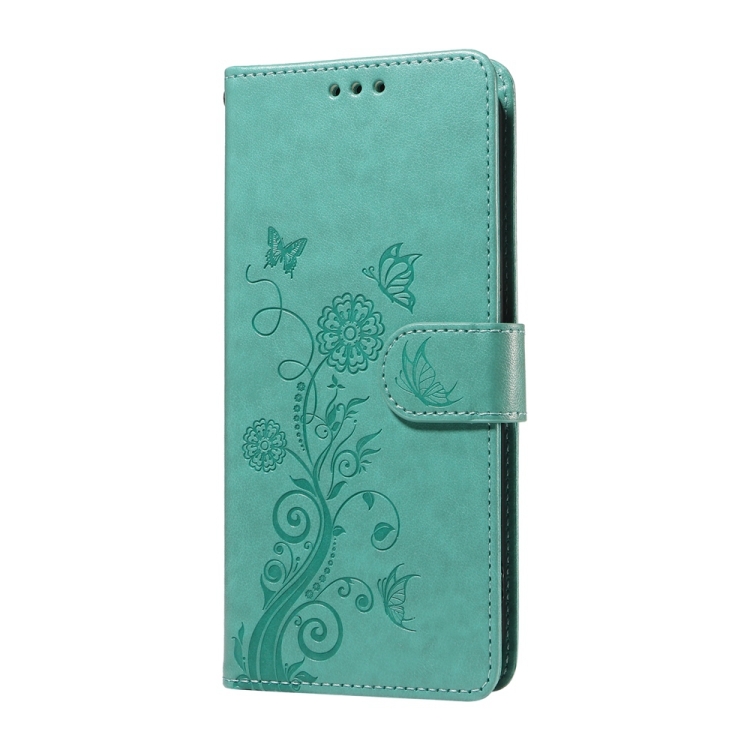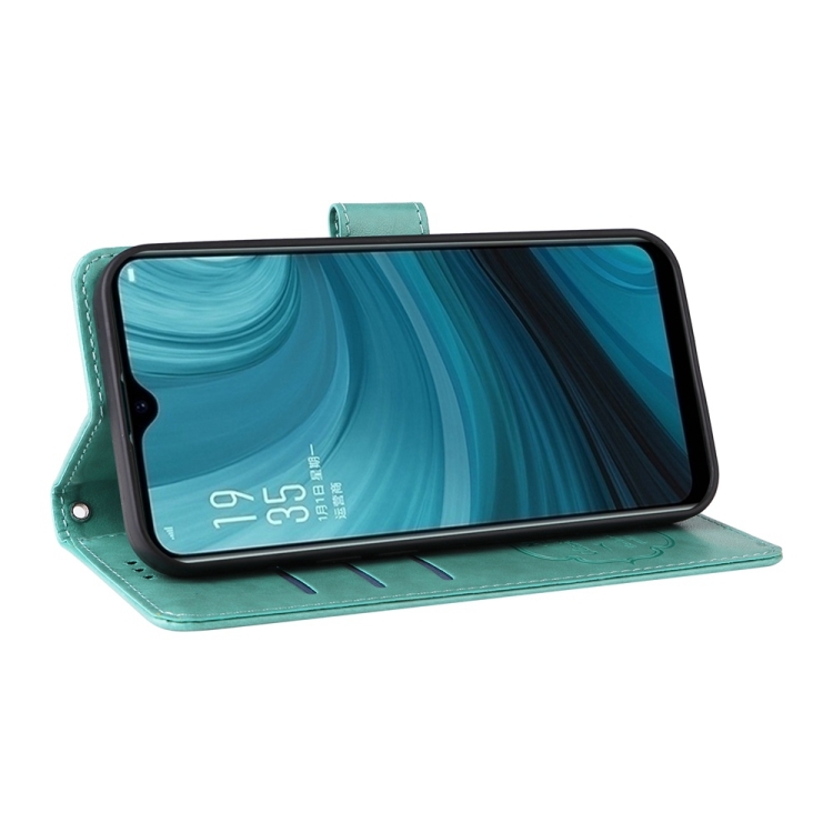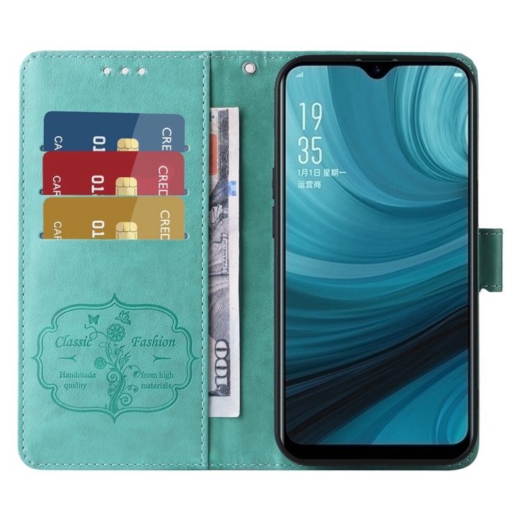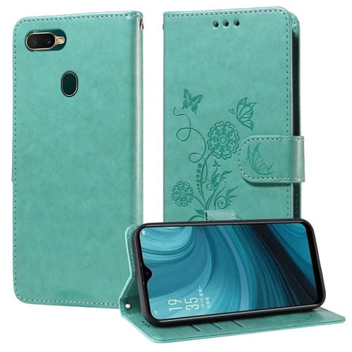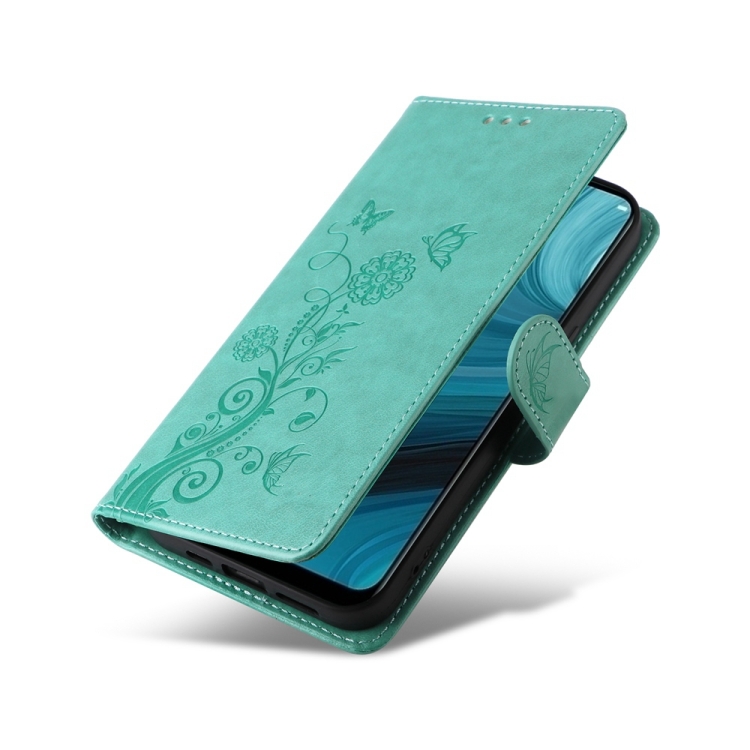 Funda de Cuero con Diseño de Mariposas y Flores En Relieve para Oppo A12/A12S/A11K (Verde)