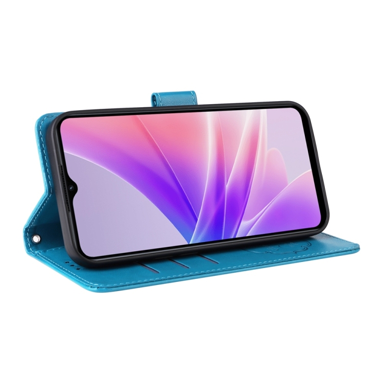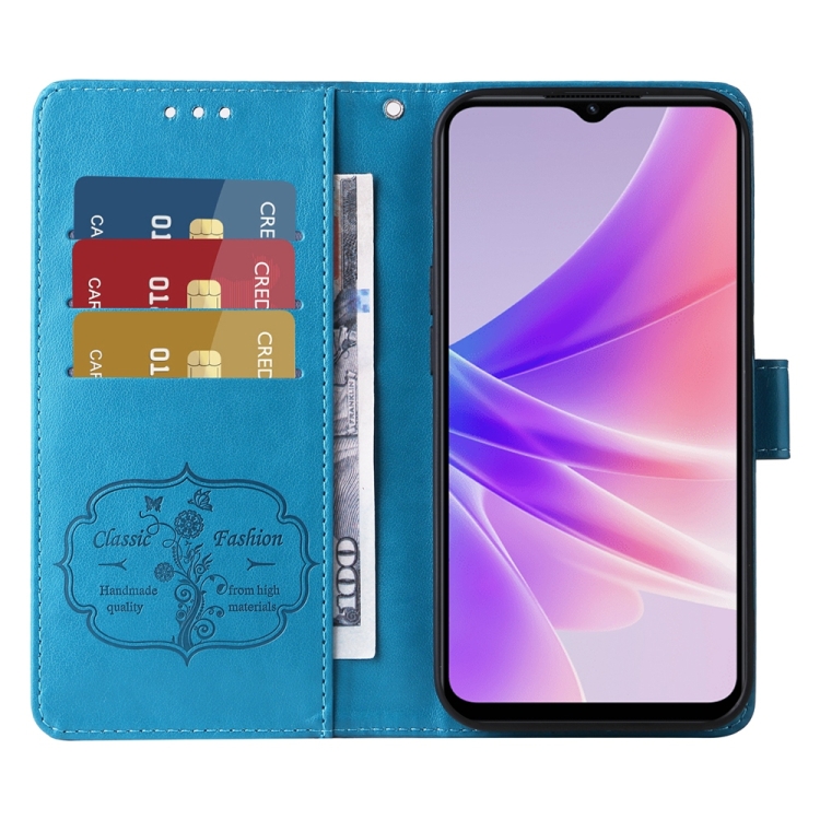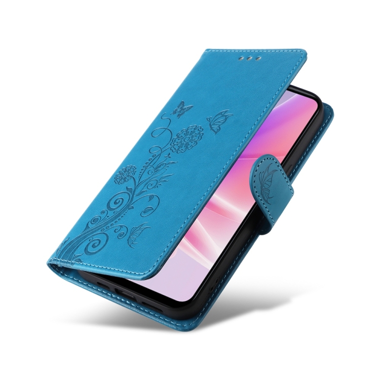 Funda de Cuero con Diseño de Mariposas y Flores En Relieve para Oppo A77 4G/5G/A77S 4G (Azul)