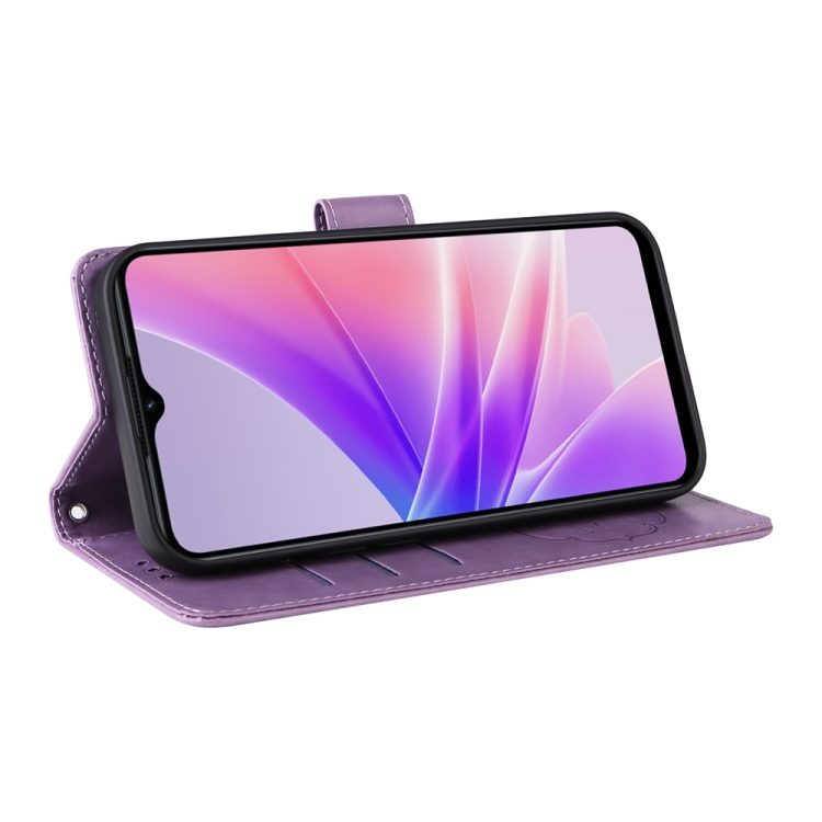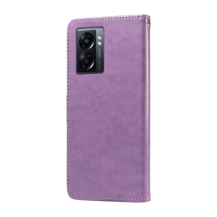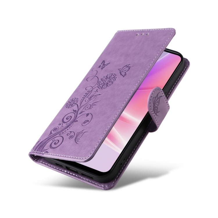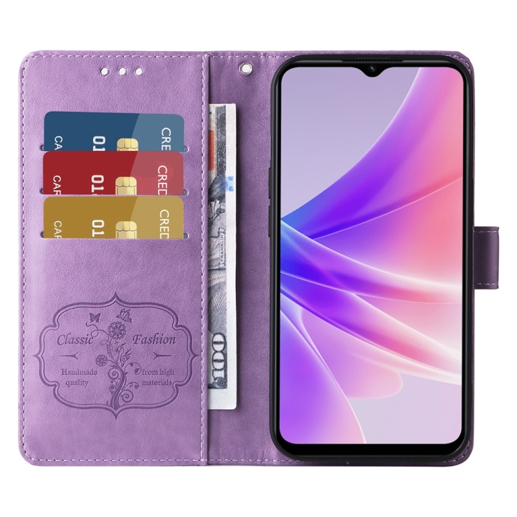 Funda de Cuero con Diseño de Mariposas y Flores En Relieve para Oppo A77 4G/5G/A77S 4G (Morado)