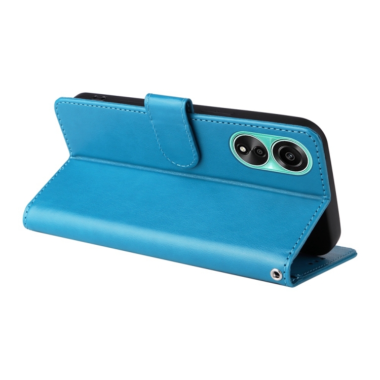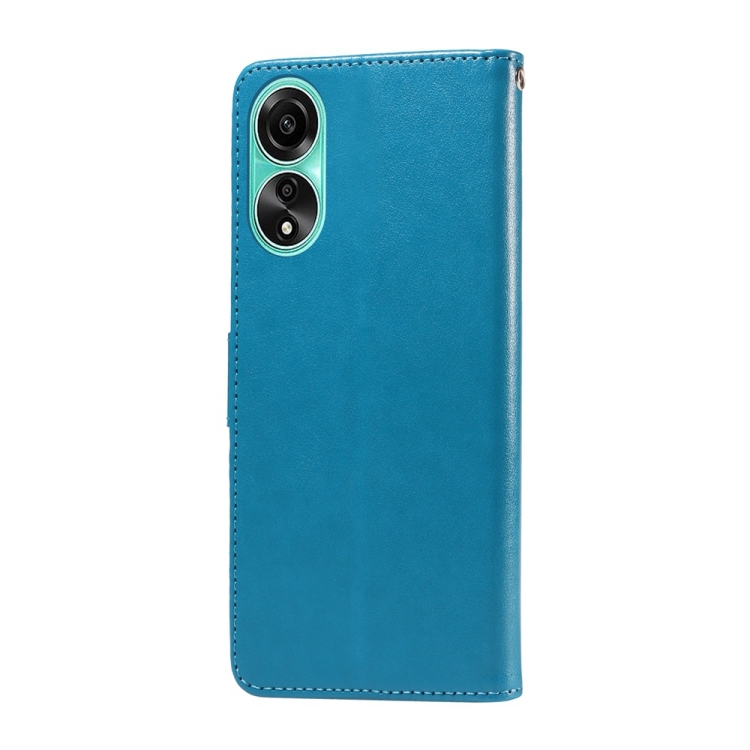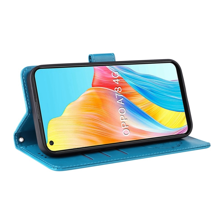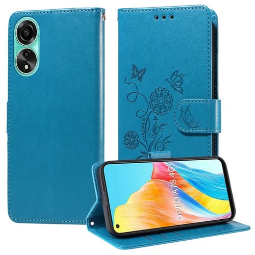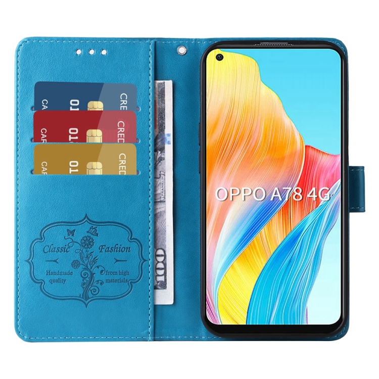 Funda de Cuero con Diseño de Mariposas y Flores En Relieve para Oppo A78 4G (Azul)
