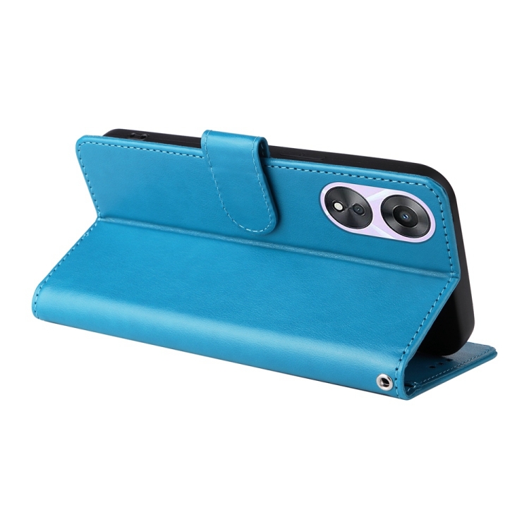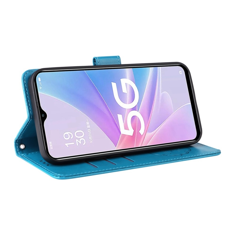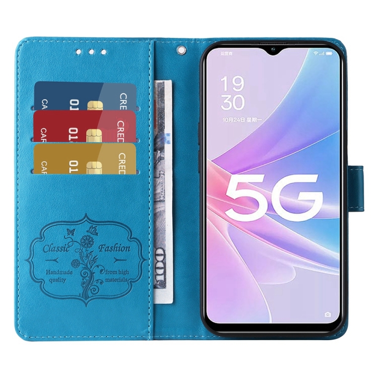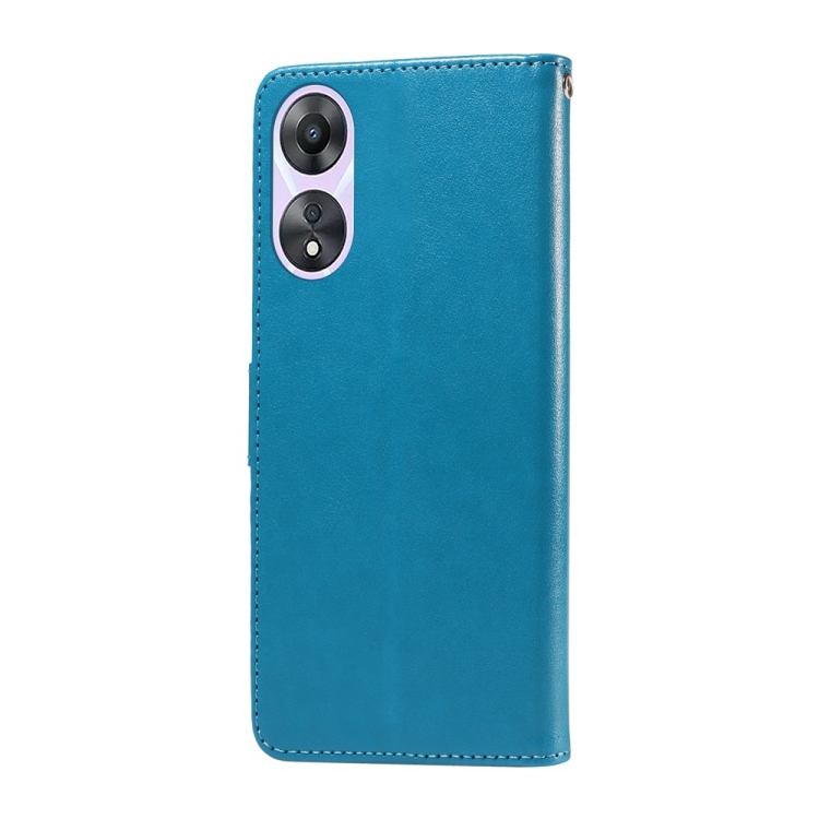 Funda de Cuero con Diseño de Mariposas y Flores En Relieve para Oppo A78 5G Global / A58X 5G / A1 Active (Azul)