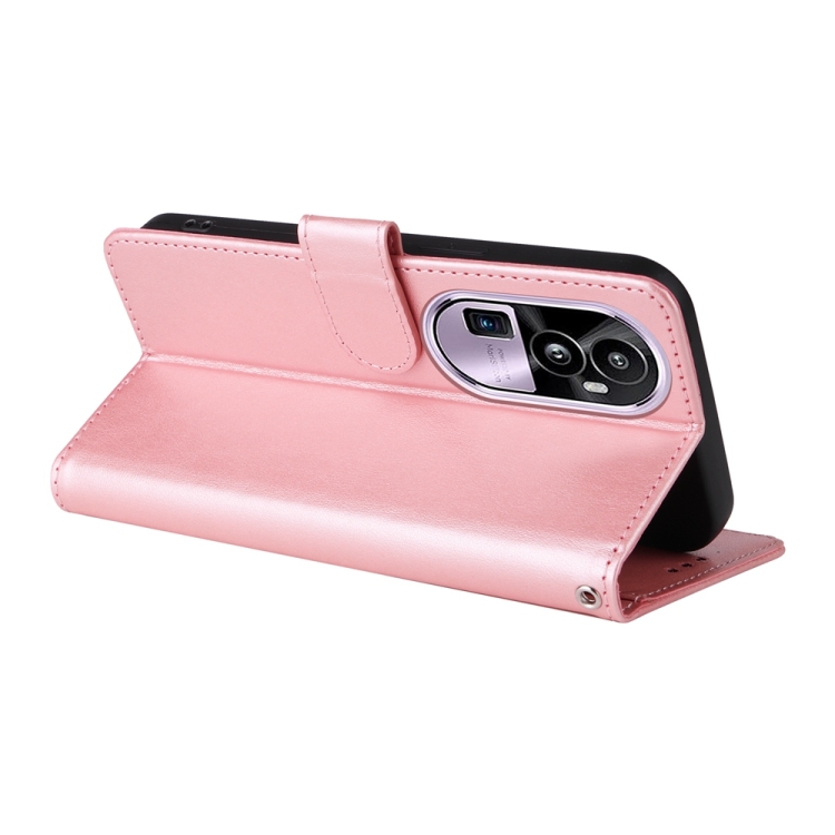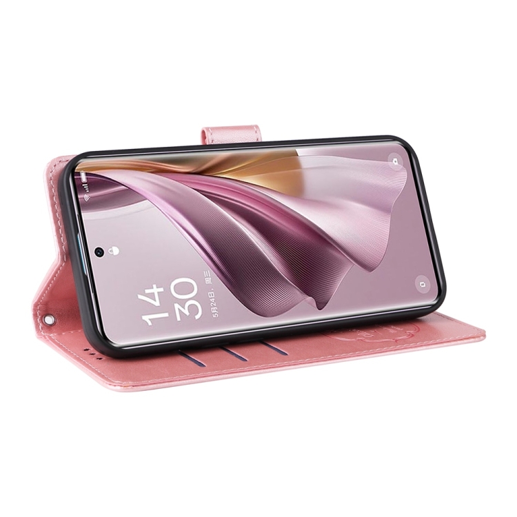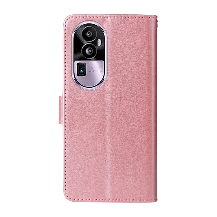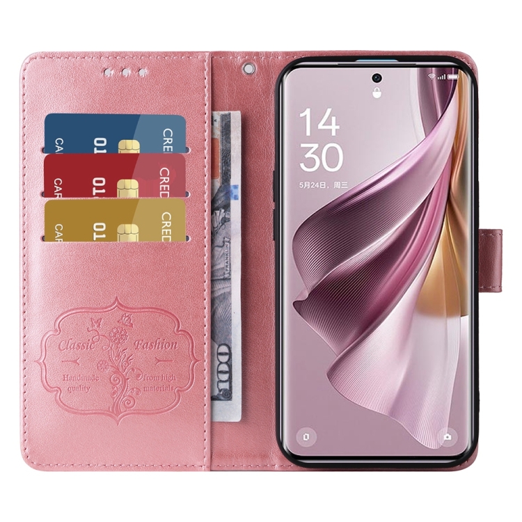 Funda de Cuero con Diseño de Mariposas y Flores En Relieve para Oppo Reno10 Pro+ (Oro Rosa)