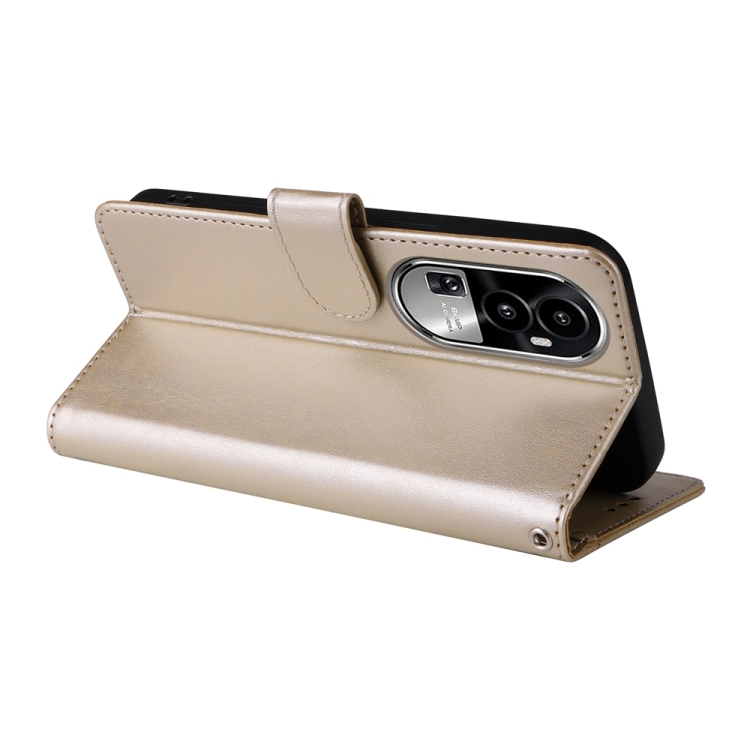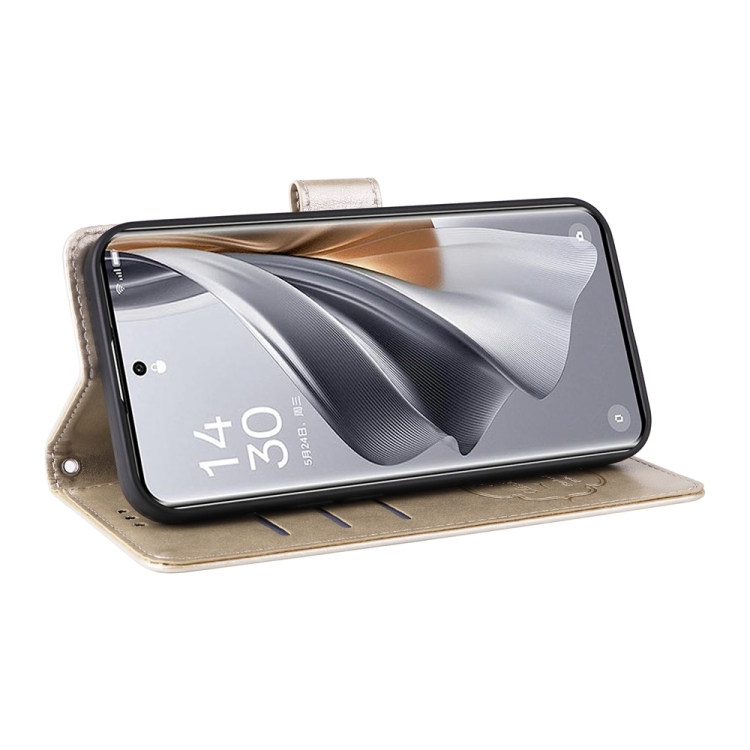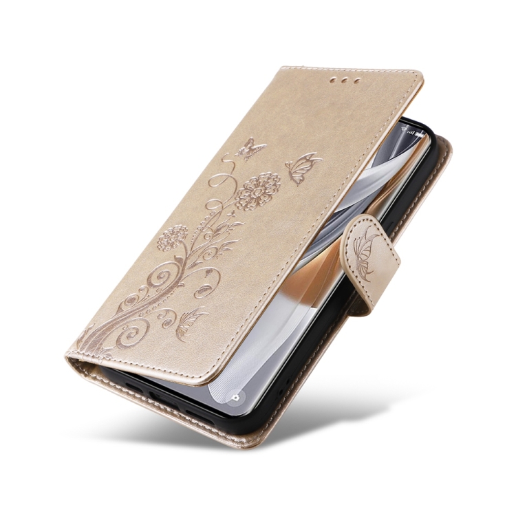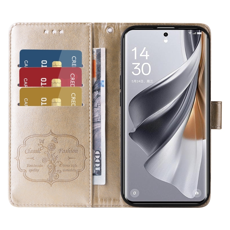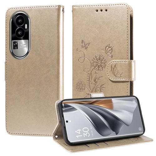 Funda de Cuero con Diseño de Mariposas y Flores En Relieve para Oppo Reno10/Reno10 Pro (Dorada)