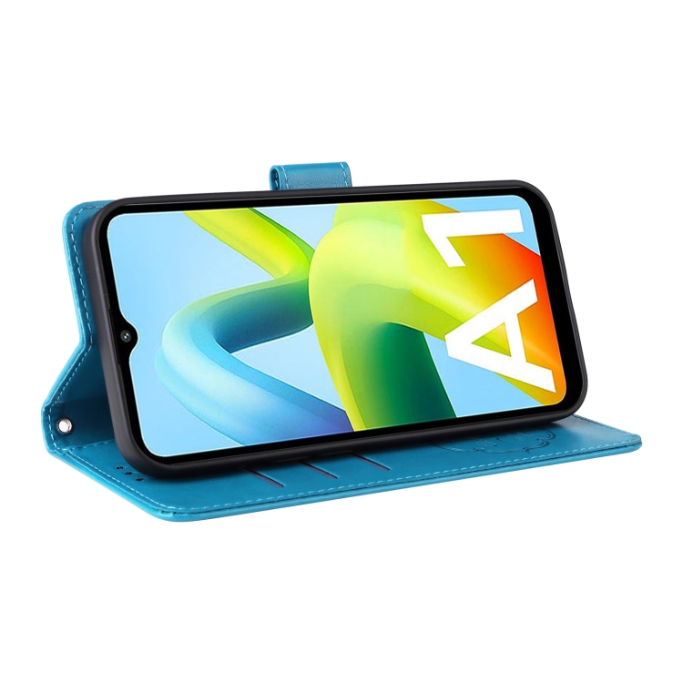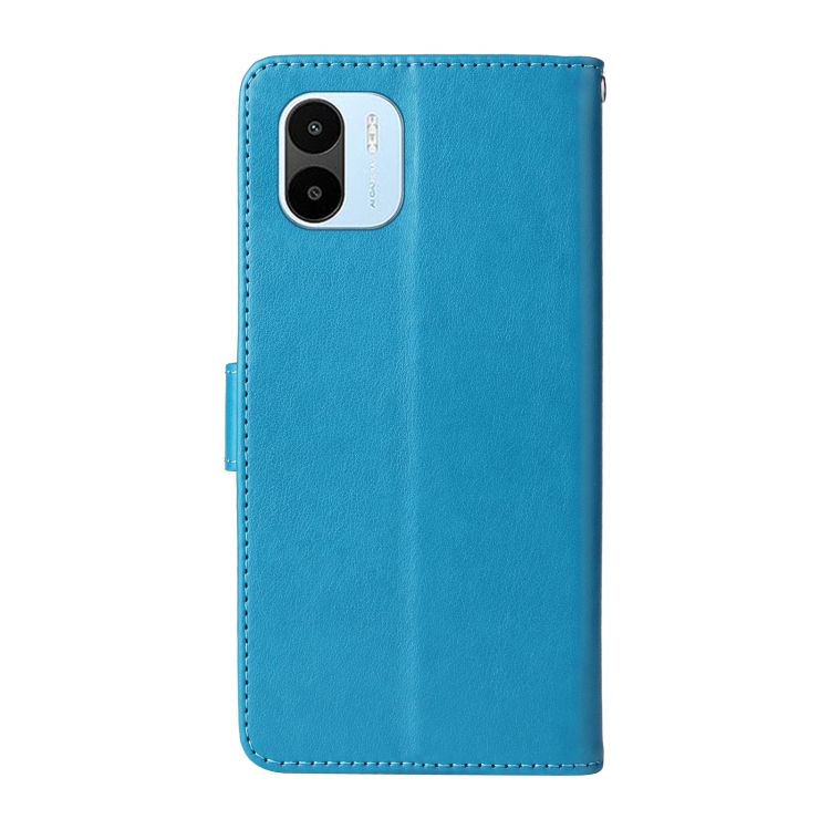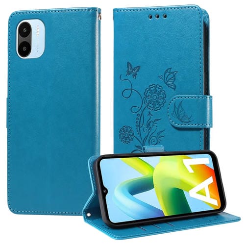 Funda de Cuero con Diseño de Mariposas y Flores En Relieve para Redmi A1 4G/A2 4G (Azul)