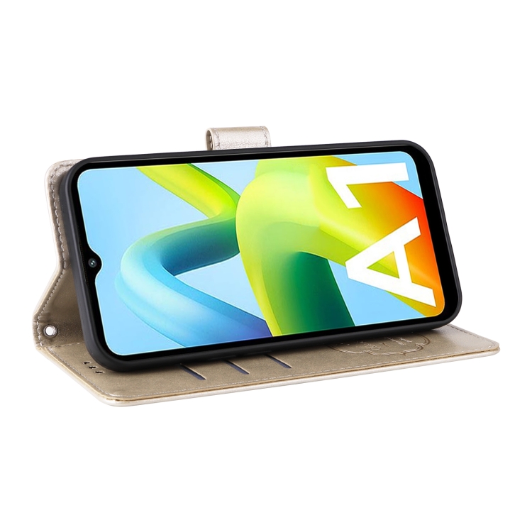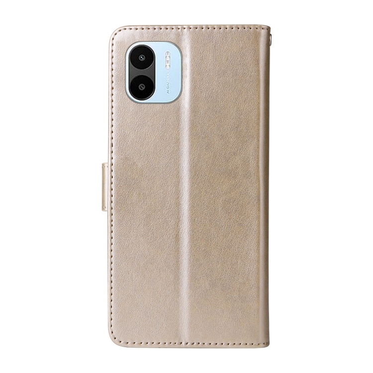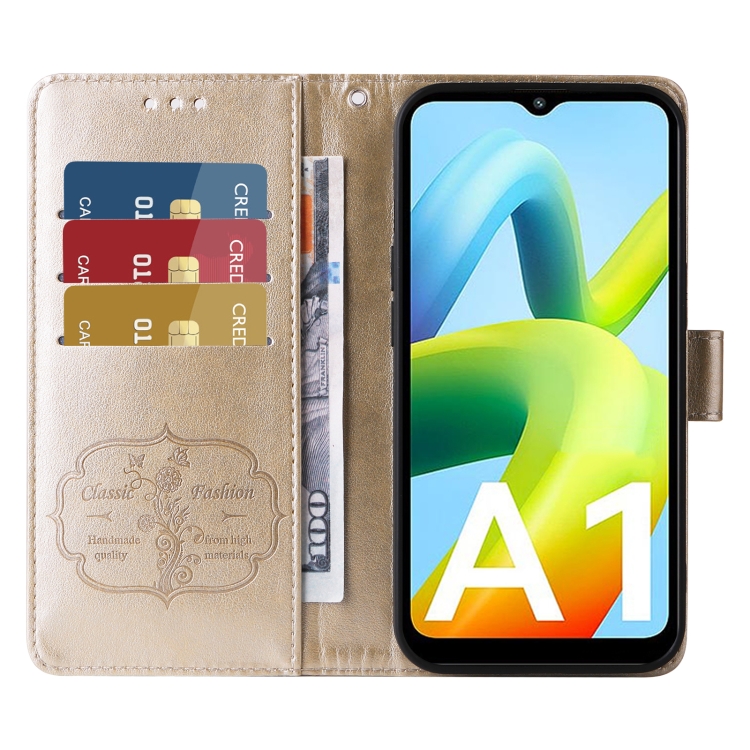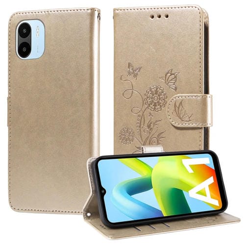 Funda de Cuero con Diseño de Mariposas y Flores En Relieve para Redmi A1 4G/A2 4G (Dorada)