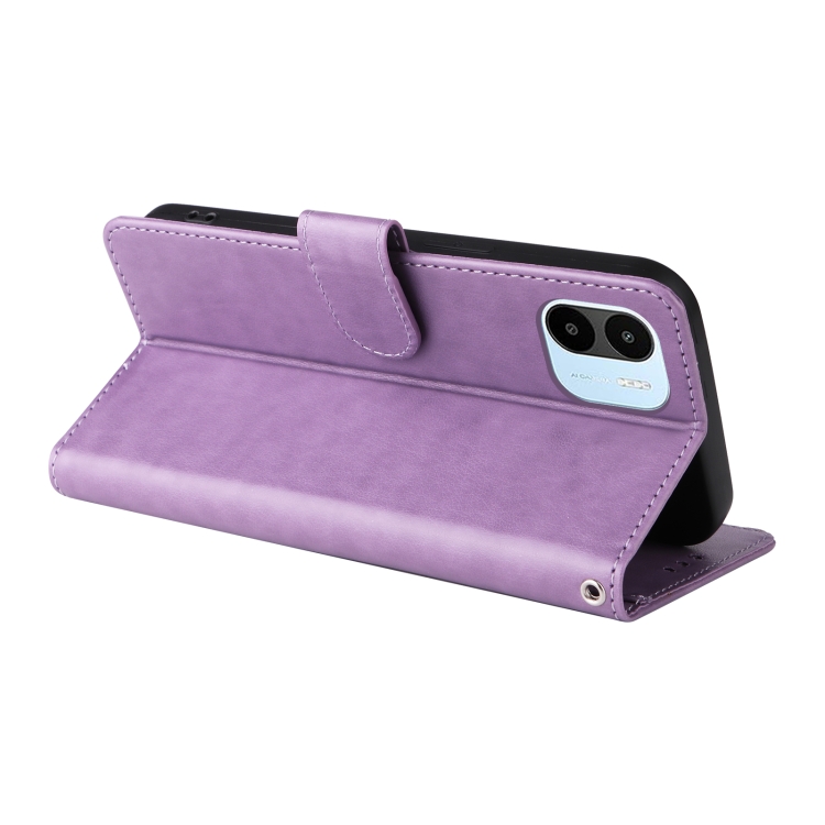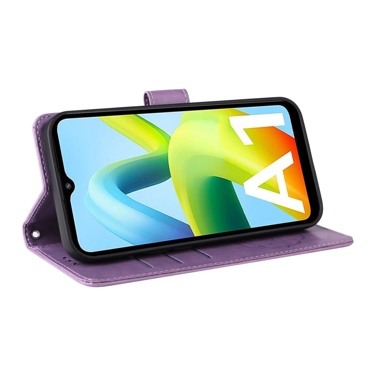 Funda de Cuero con Diseño de Mariposas y Flores En Relieve para Redmi A1 4G/A2 4G (Morado)