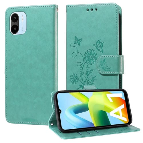 Funda de Cuero con Diseño de Mariposas y Flores En Relieve para Redmi A1 4G/A2 4G (Verde)