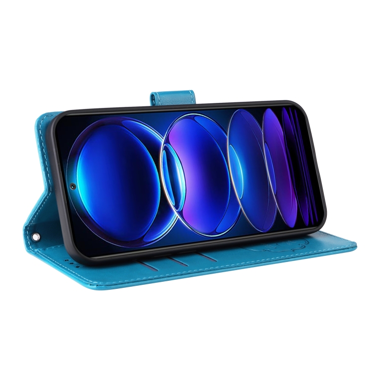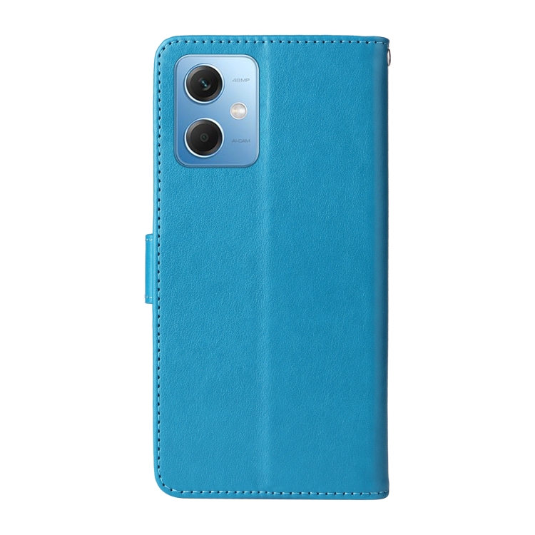 Funda de Cuero con Diseño de Mariposas y Flores En Relieve para Redmi Note 12 5G (Azul)
