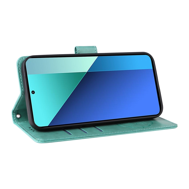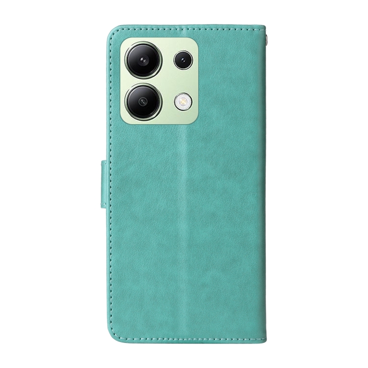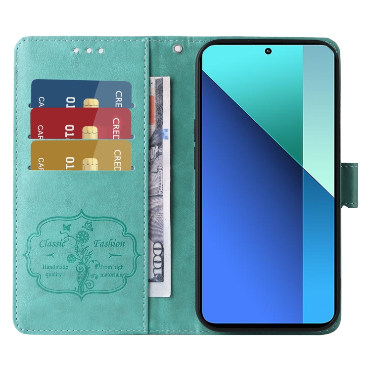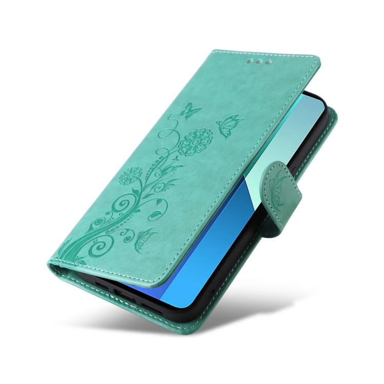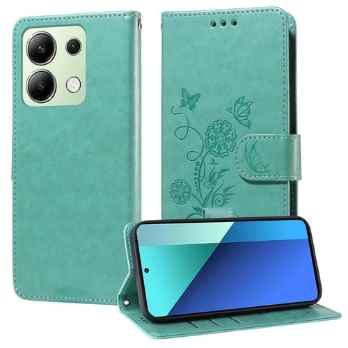 Funda de Cuero con Diseño de Mariposas y Flores En Relieve para Redmi Note 13 4G (Verde)