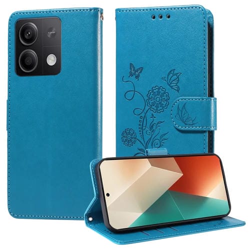Funda de Cuero con Diseño de Mariposas y Flores En Relieve para Redmi Note 13 5G (Azul)