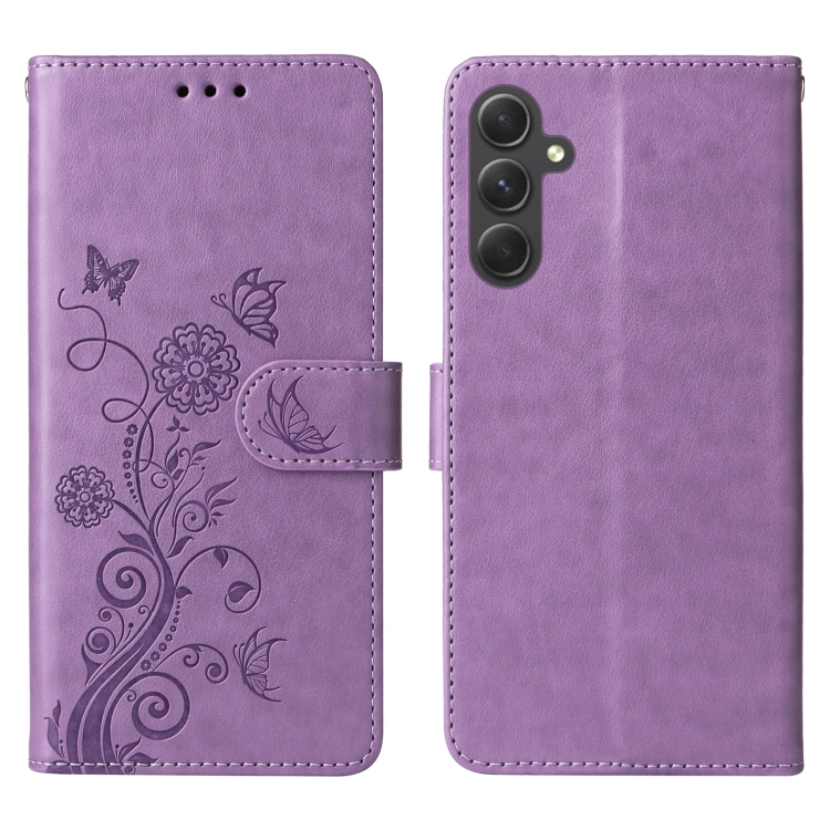Funda Cuero Samsung Galaxy A54 5G Diseño Mariposas Flores En Relieve (Morado)