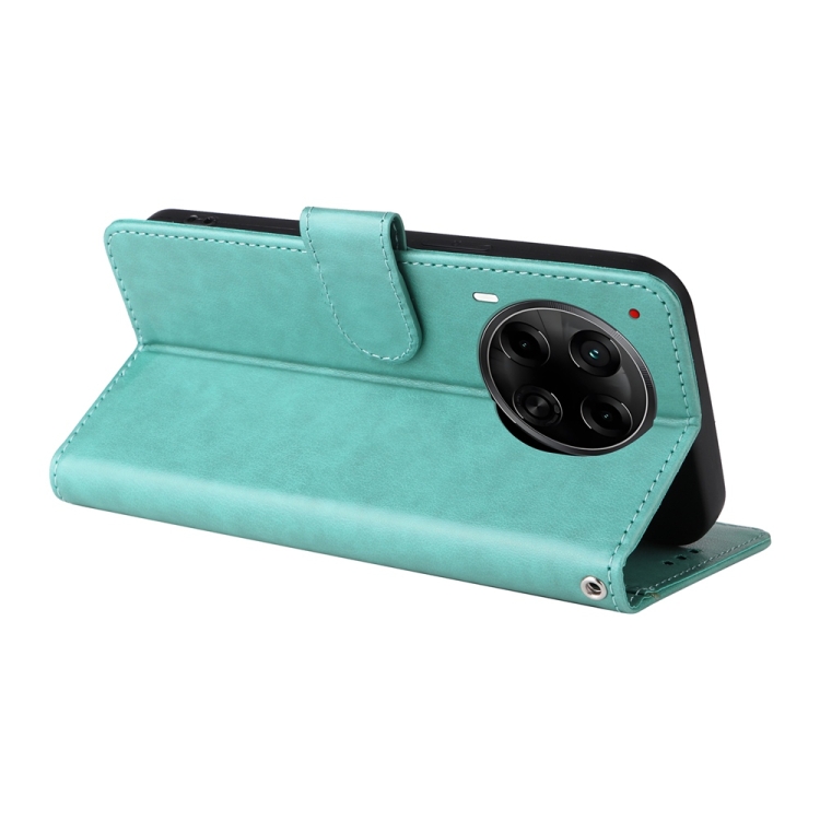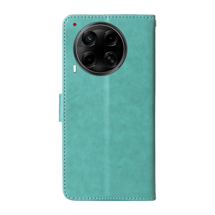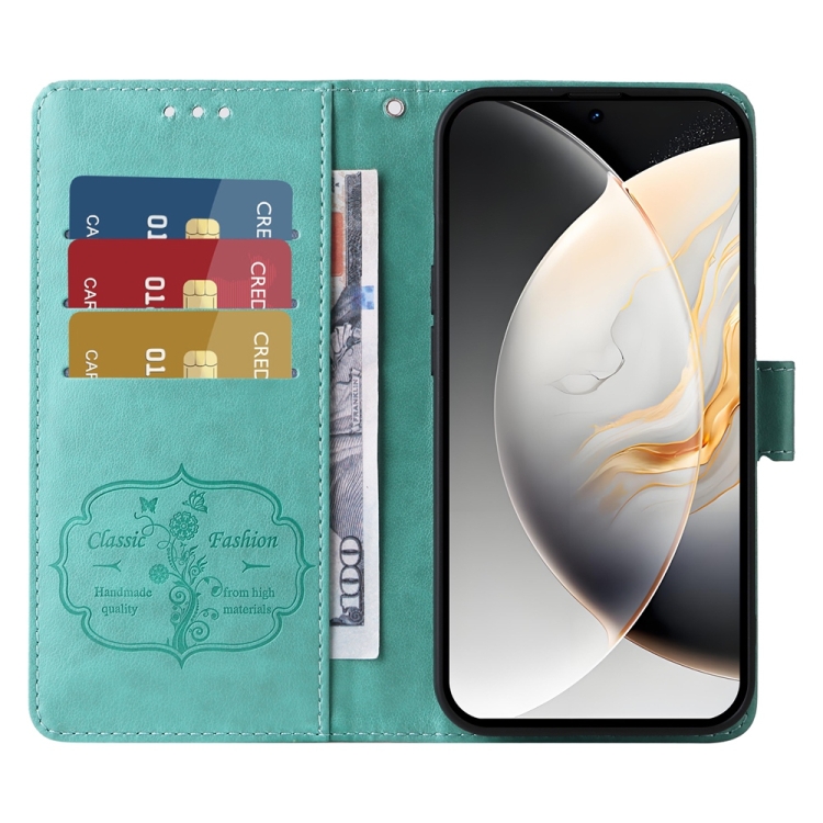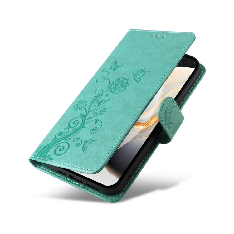 Funda de Cuero para Tecno Camon 30S y 30S Pro con Diseño de Mariposas y Flores en Relieve (Verde)