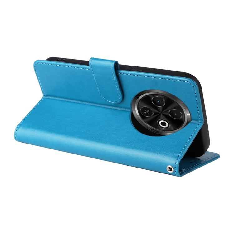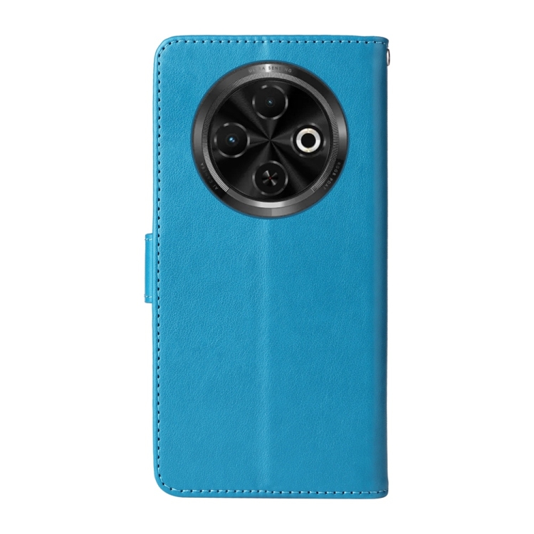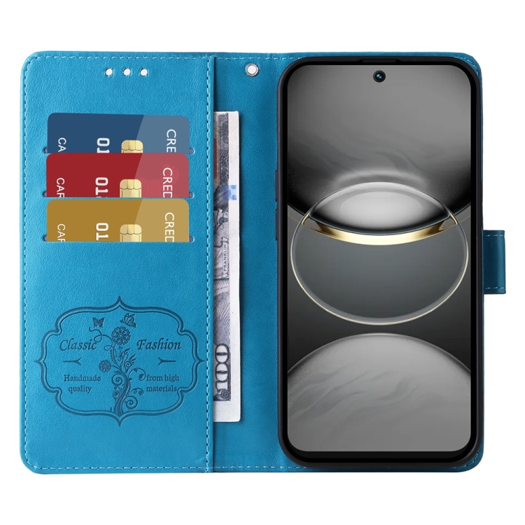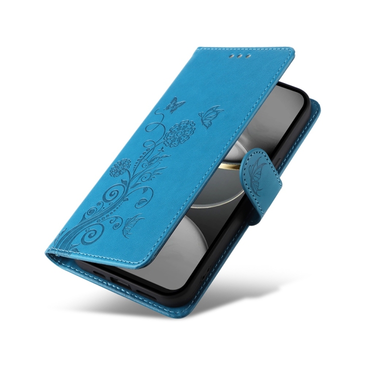 Funda de Cuero para Tecno Spark 30C con Diseño de Mariposas y Flores en Relieve (Azul)
