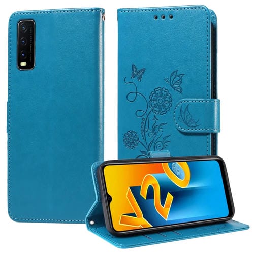 Funda de Cuero con Diseño de Mariposas En Relieve para Vivo Y20/Y20I/Y20S/Y12S (Azul)