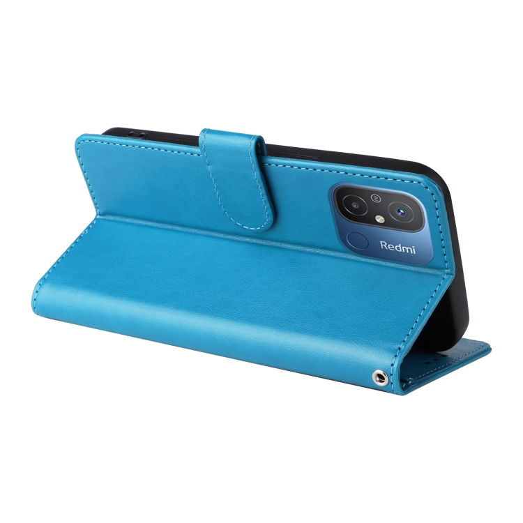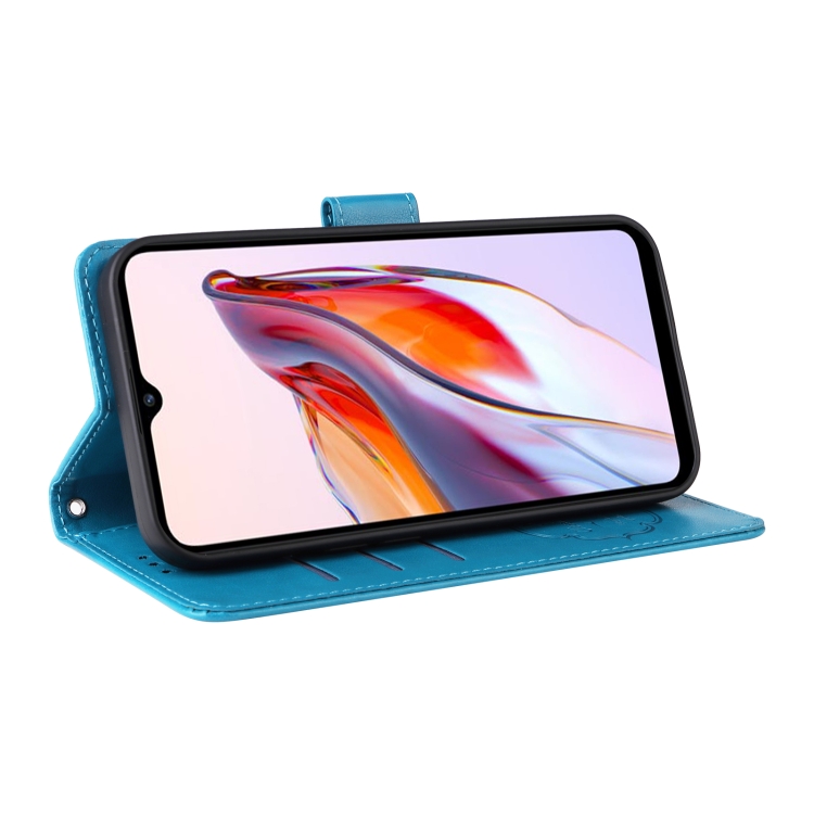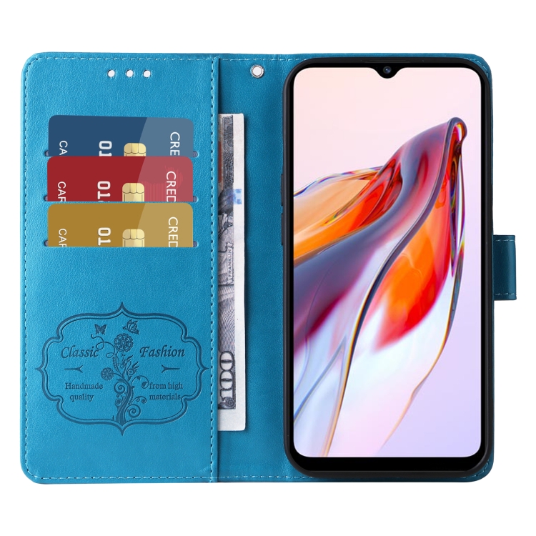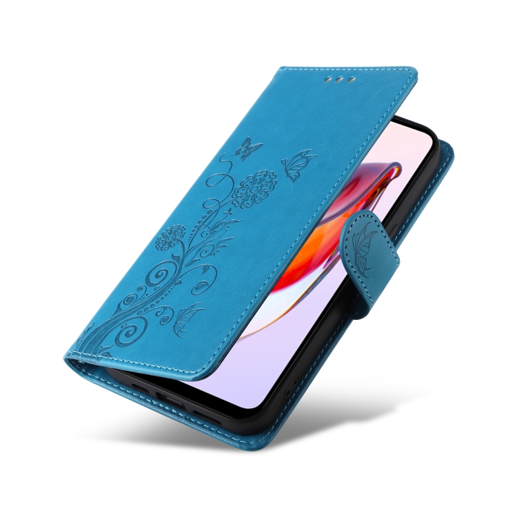 Funda de Cuero con Diseño de Mariposas y Flores En Relieve para Xiaomi Poco C55/Redmi 11A 4G (Azul)