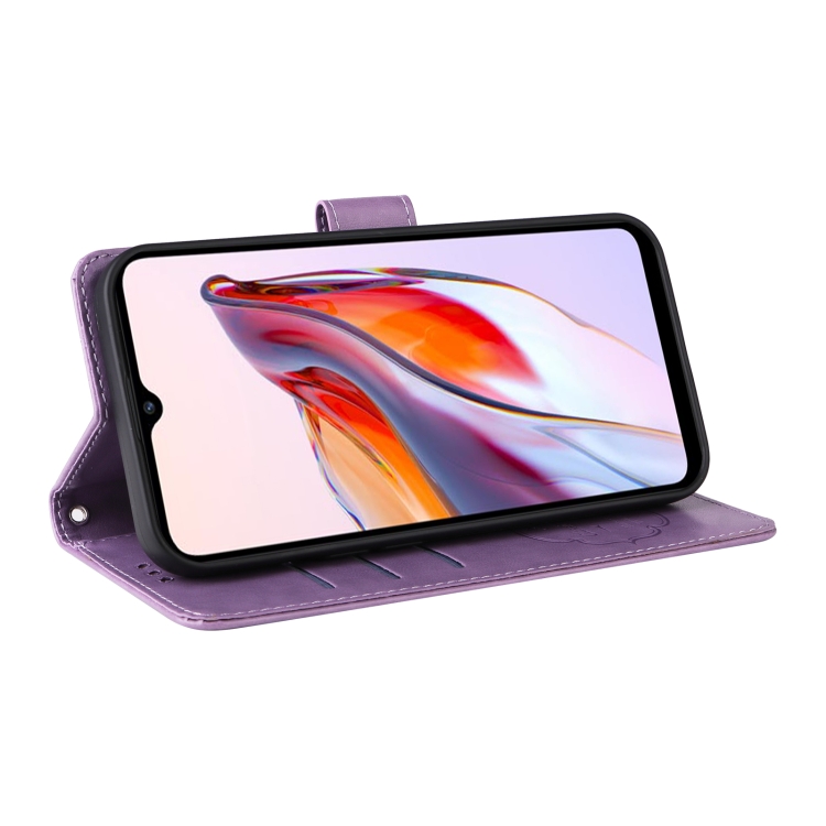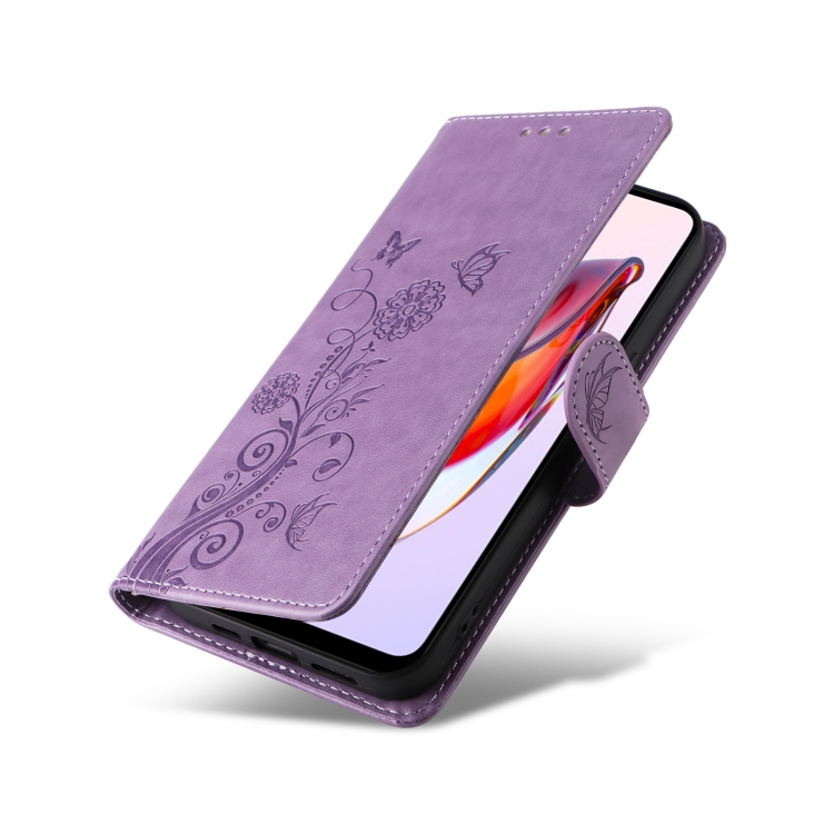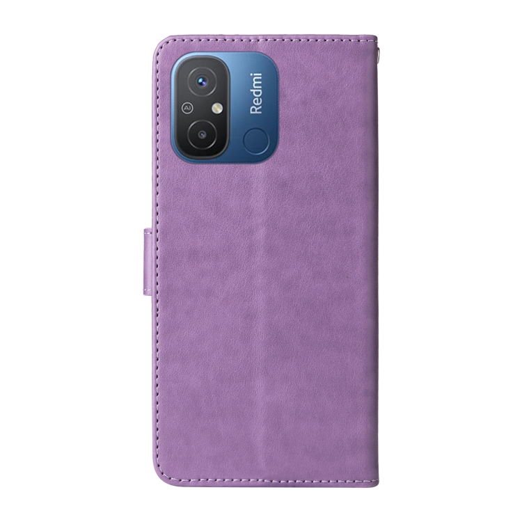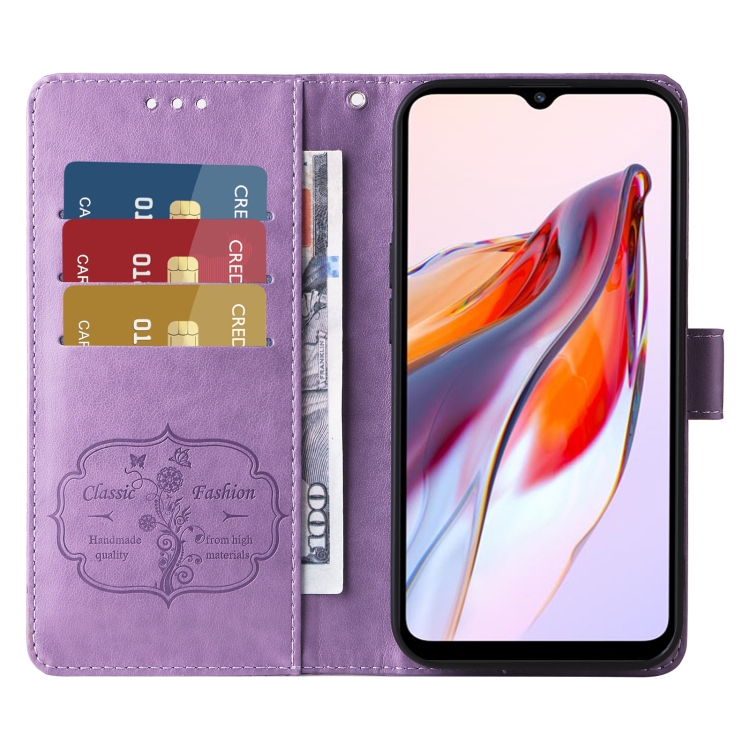 Funda de Cuero con Diseño de Mariposas y Flores En Relieve para Xiaomi Poco C55/Redmi 11A 4G (Morado)