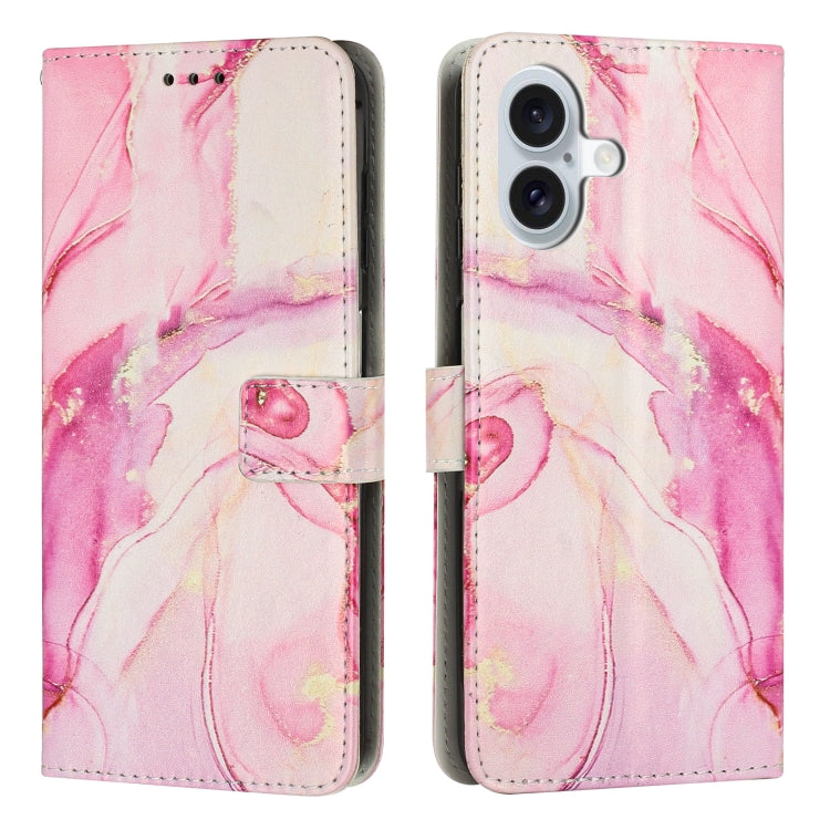 Funda de Cuero iPhone 16 Diseño Mármol Pintado (Oro Rosa)