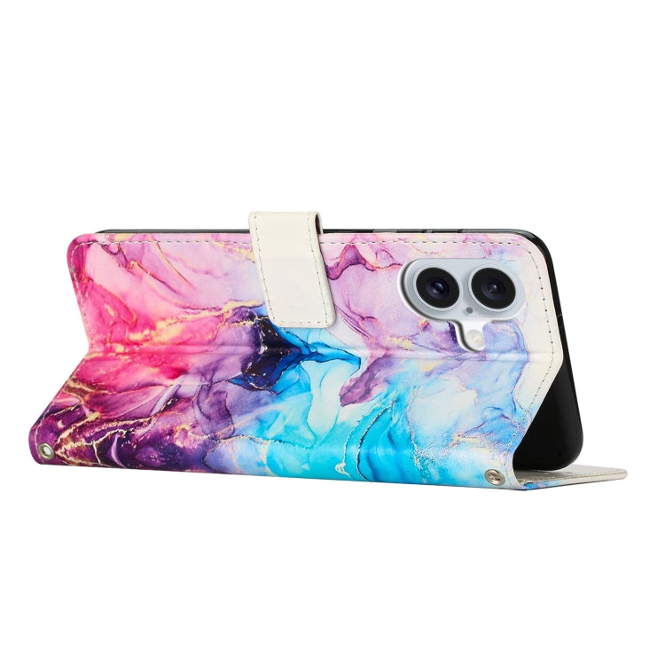 Funda de Cuero para iPhone 16 con Diseño de Mármol Pintado (Rosa y Morado)