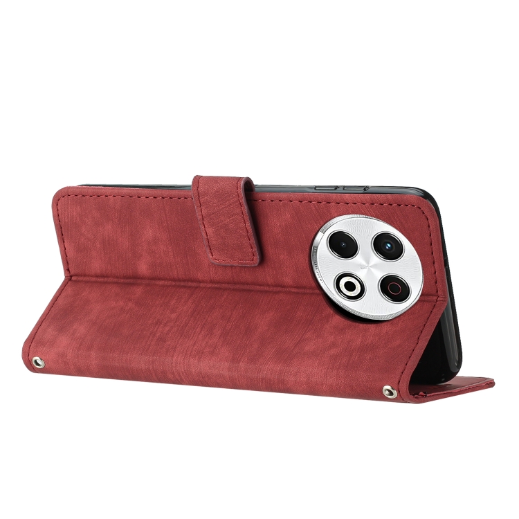 Funda de Cuero para Tecno Spark 30 Pro con Diseño de Rayas y Cordón Largo (Rojo)
