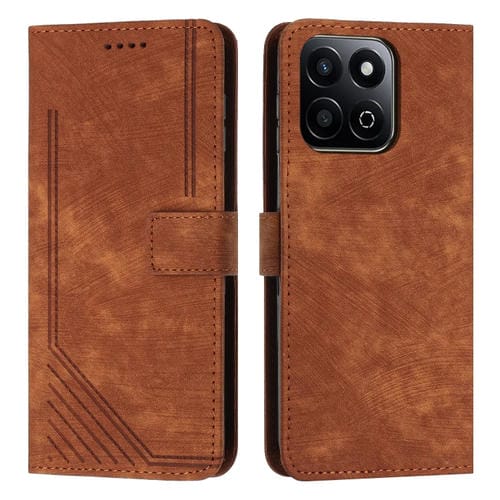 Funda de Cuero con Diseño de Rayas y Cordón para Honor X7C (Marrón)