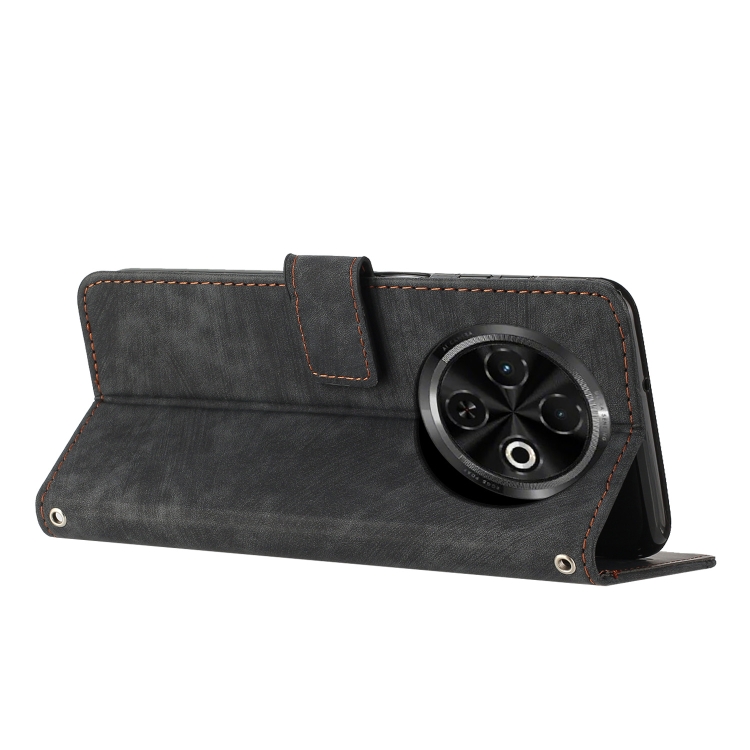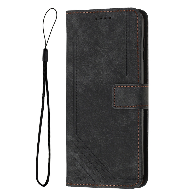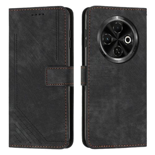 Funda de Cuero para Tecno Spark 30C con Diseño de Rayas y Tacto Sedoso (Negro)