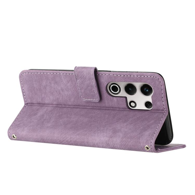 Funda de Cuero Itel S25 Ultra Diseño de Rayas Tacto Sedoso (Morado)