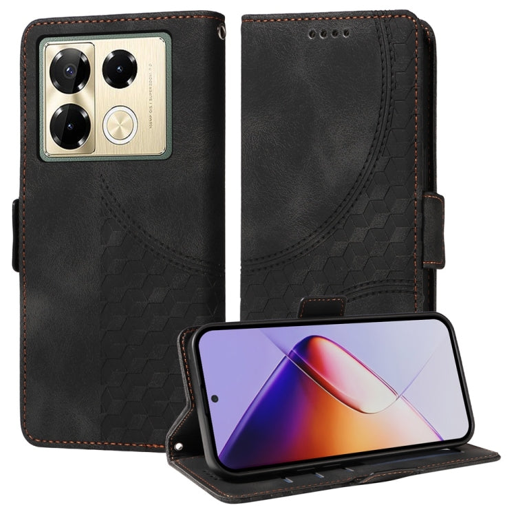 Funda de Cuero para Infinix Note 40 Pro 4G/5G y Note 40 Pro+ con Diseño de Rombos y Estrellas (Negra)