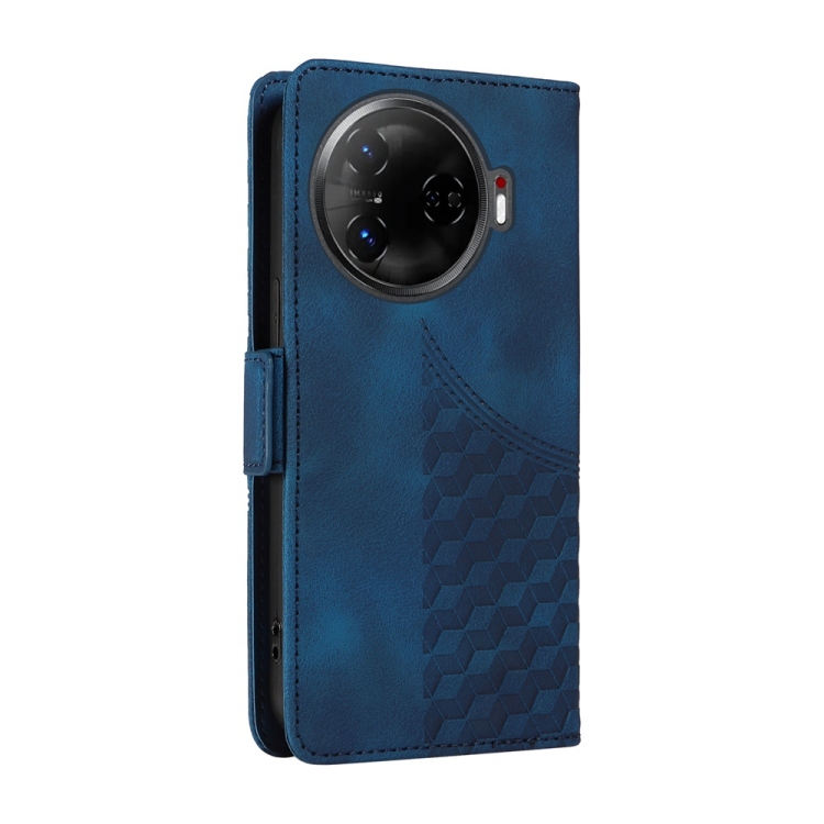 Funda de Cuero para Tecno Camon 30 Pro con Diseño de Rombos y Estrellas en Relieve (Azul)