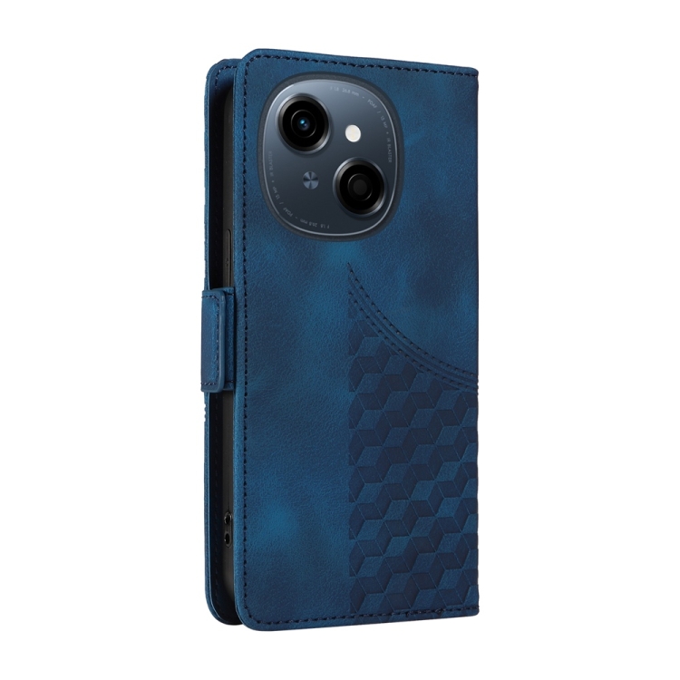 Funda de Cuero para Tecno Spark Go 1 Pop 9 Spark Go 2025 con Diseño de Rombos y Estrellas (Azul)