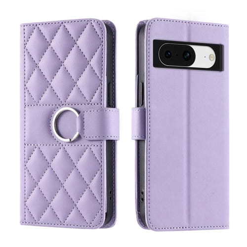 Funda de Cuero para Google Pixel 8A con Diseño de Rombos y Hebilla de Anillo (Morado)
