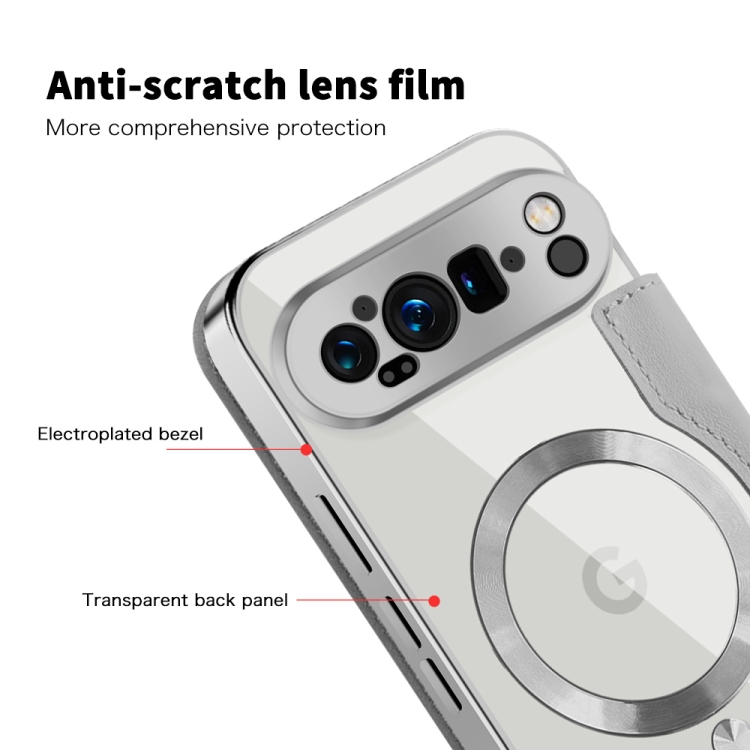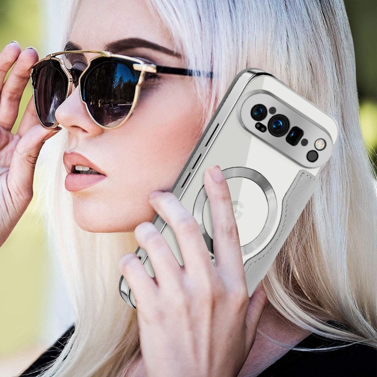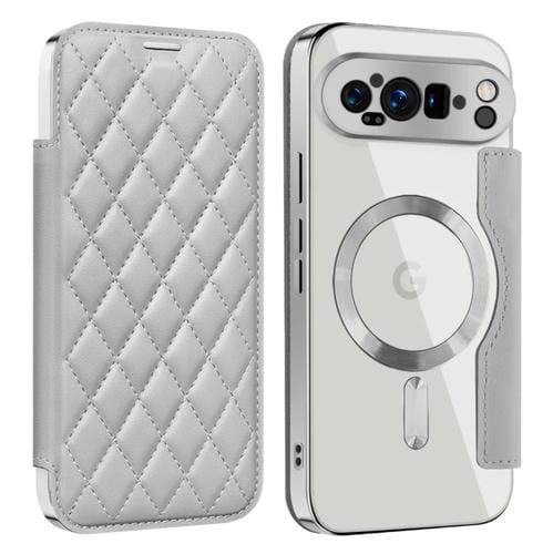 Funda de Cuero Google Pixel 9 Pro XL con Diseño de Rombos y Protección RFID Magsafe (Gris)