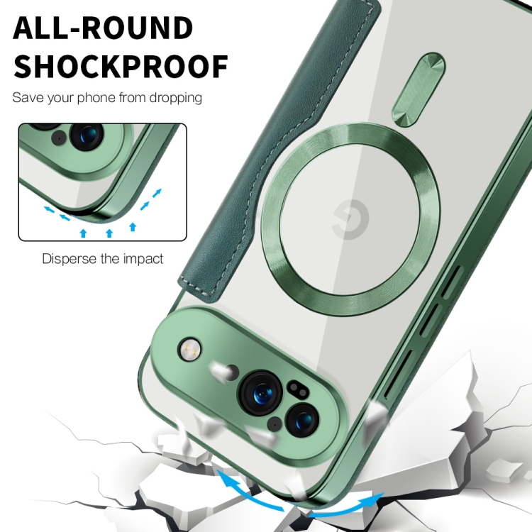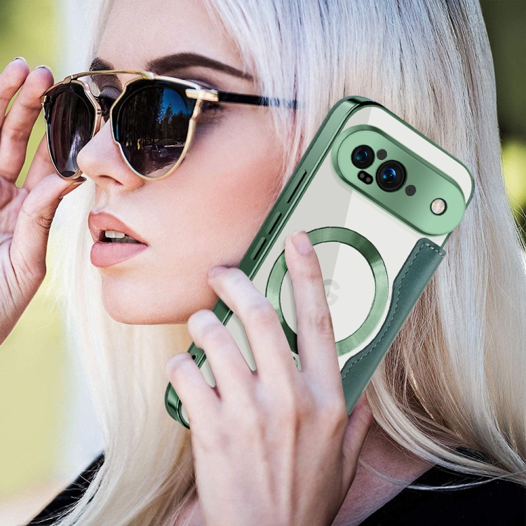 Funda de Cuero con Diseño de Rombos y Protección Rfid Magsafe para Google Pixel 9 (Verde)