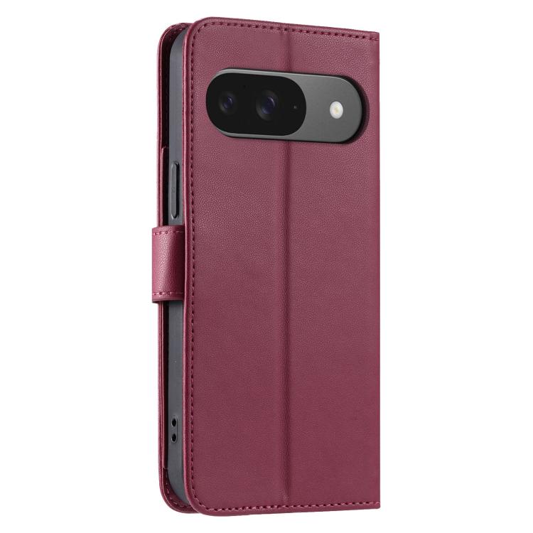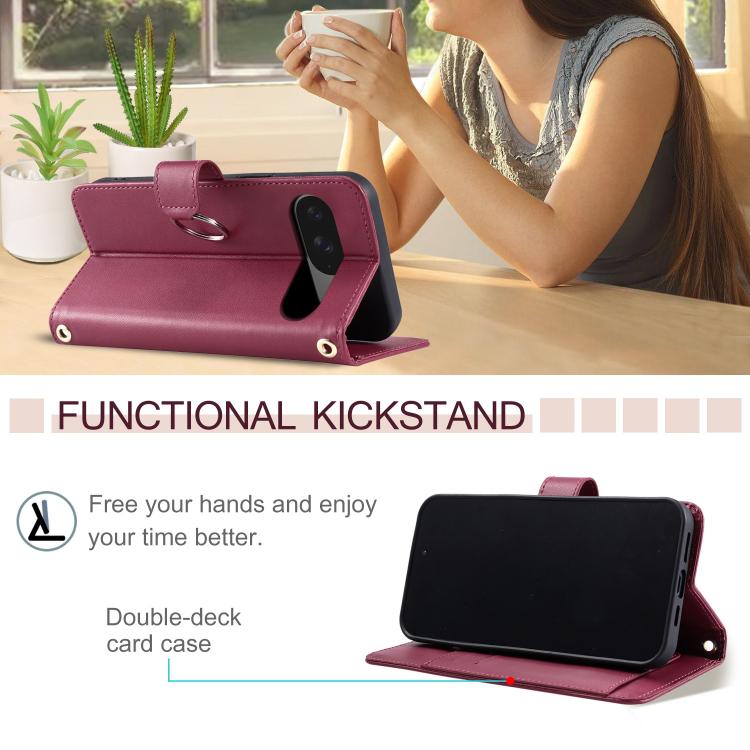 Funda de Cuero con Diseño Rómbico y Hebilla de Anillo para Google Pixel 9/9 Pro (Roja)