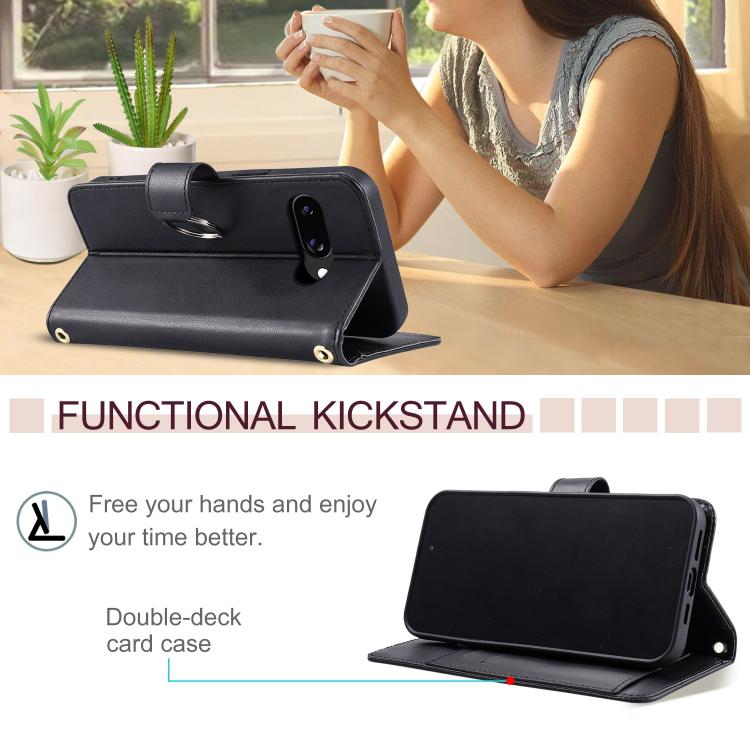 Funda de Cuero Google Pixel 9A Diseño Rómbico Hebilla de Anillo (Negra)